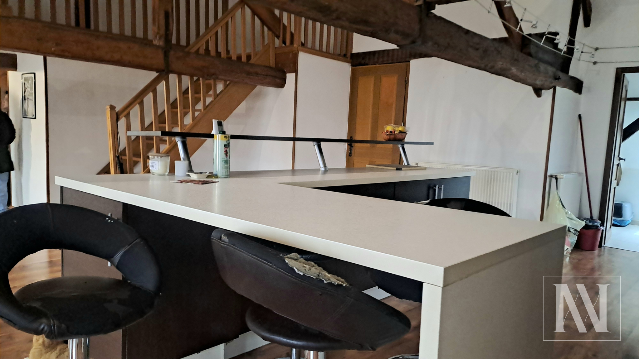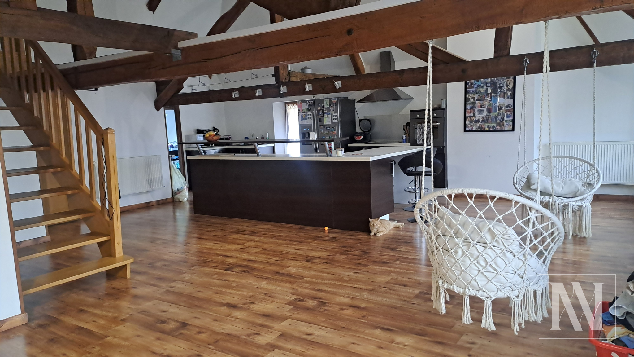 ...Au rez-de-chaussée, vous découvrirez une entrée, une cuisine, ainsi qu'un vaste salon-séjour...
