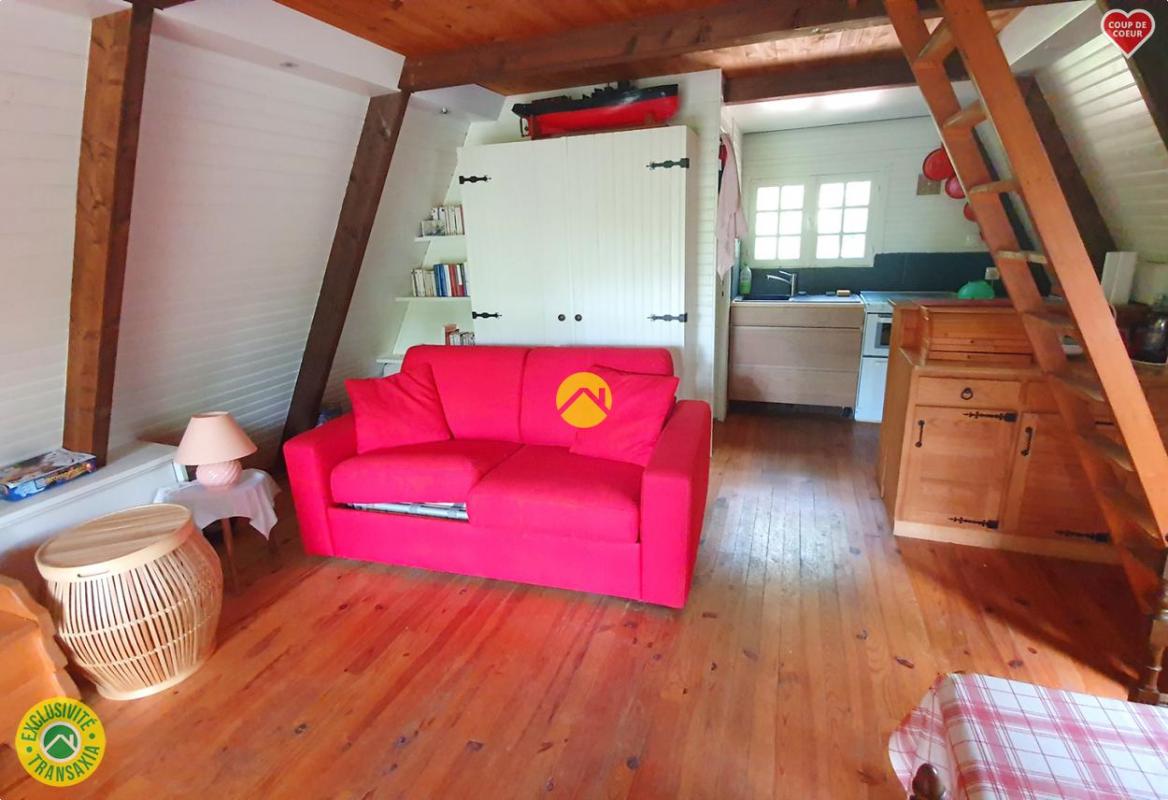 ...Dans cet écrin de verdure, un magnifique chalet en A refait récemment de 25 m2 environ au RDC...