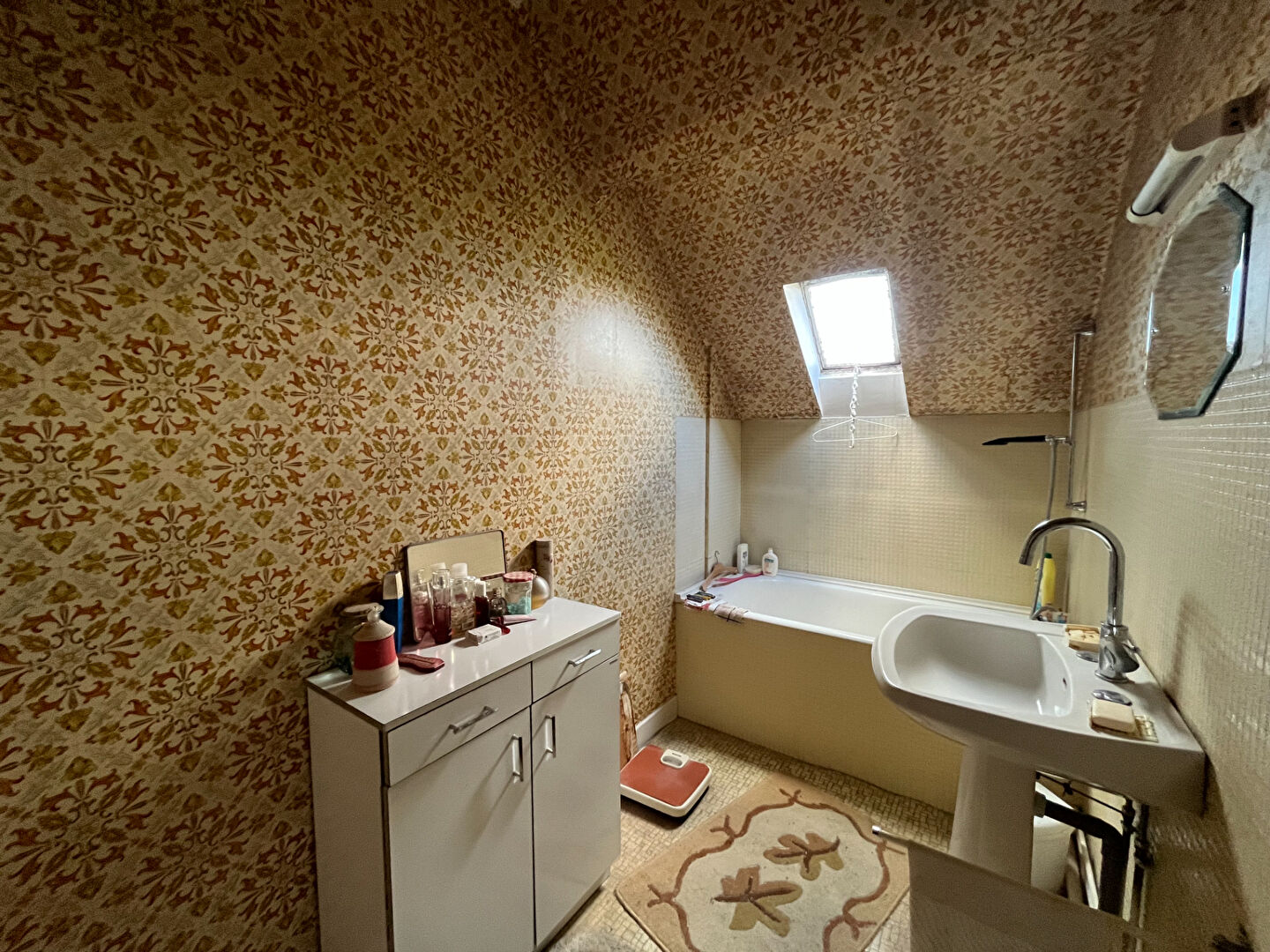...A l'étage un couloir desservant deux chambres, une salle de bains et une partie grenier à...