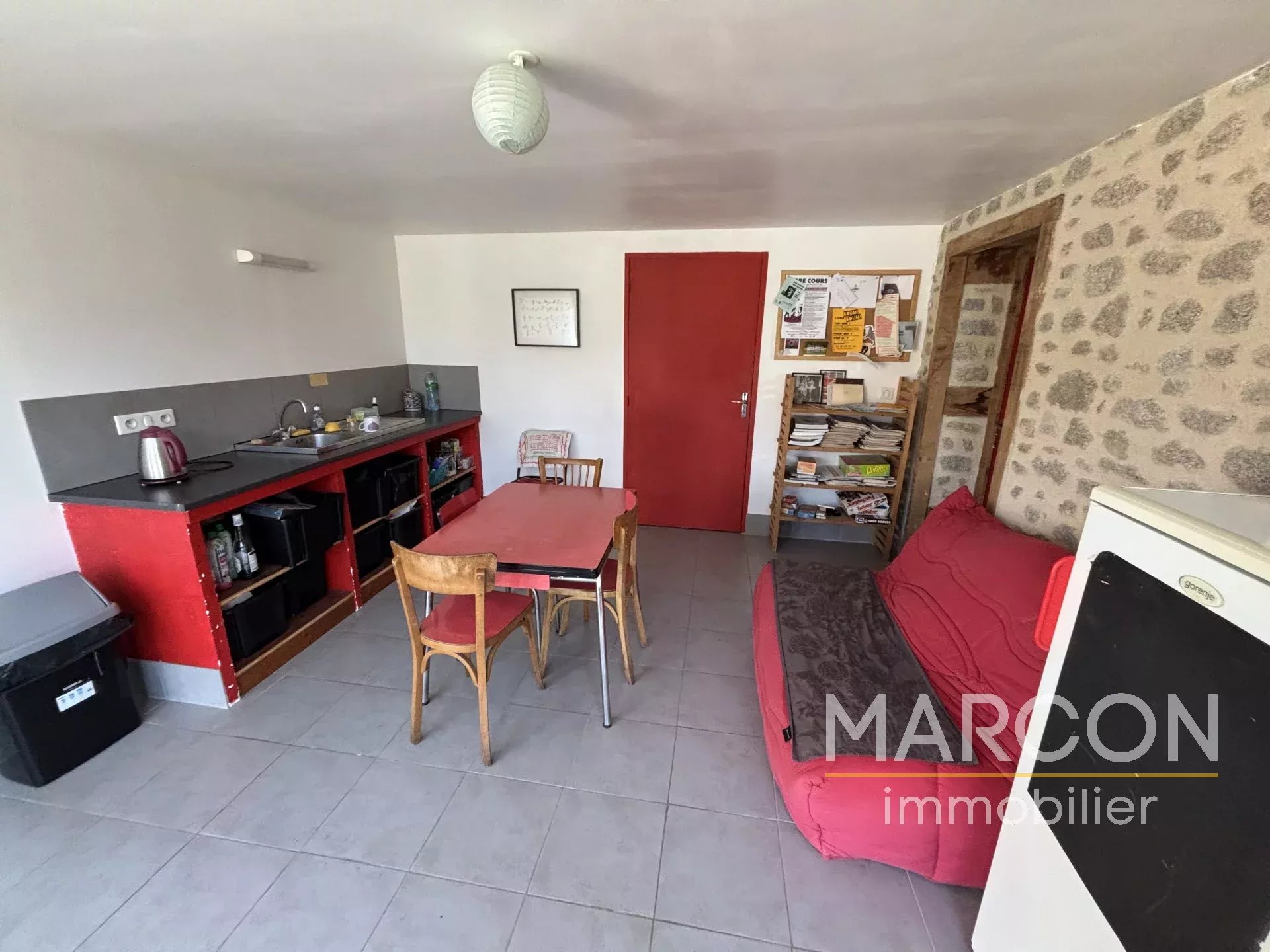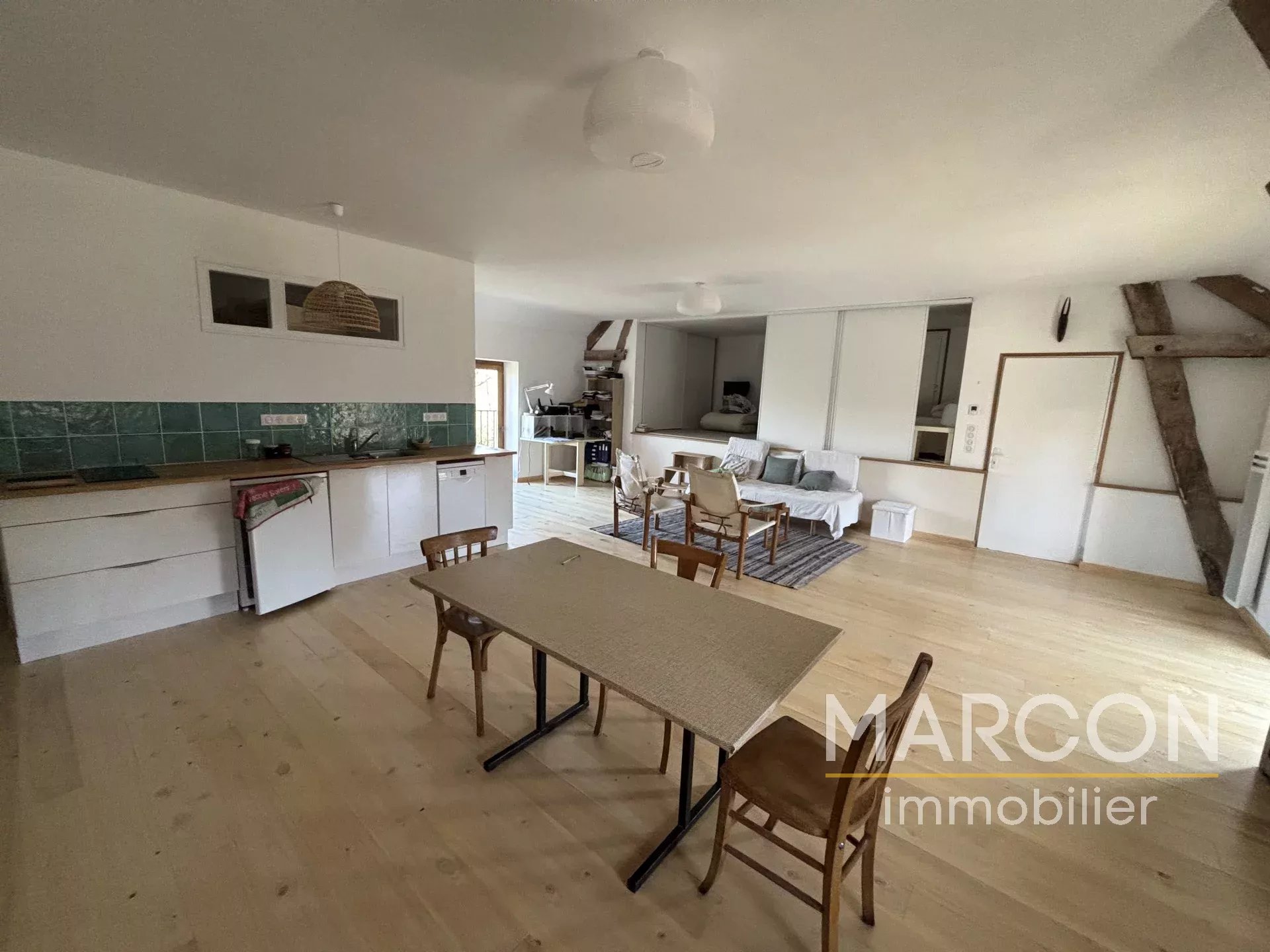 ...1er étage : cuisine-séjour avec une partie chambre de 62 m², salle d'eau, wc...
