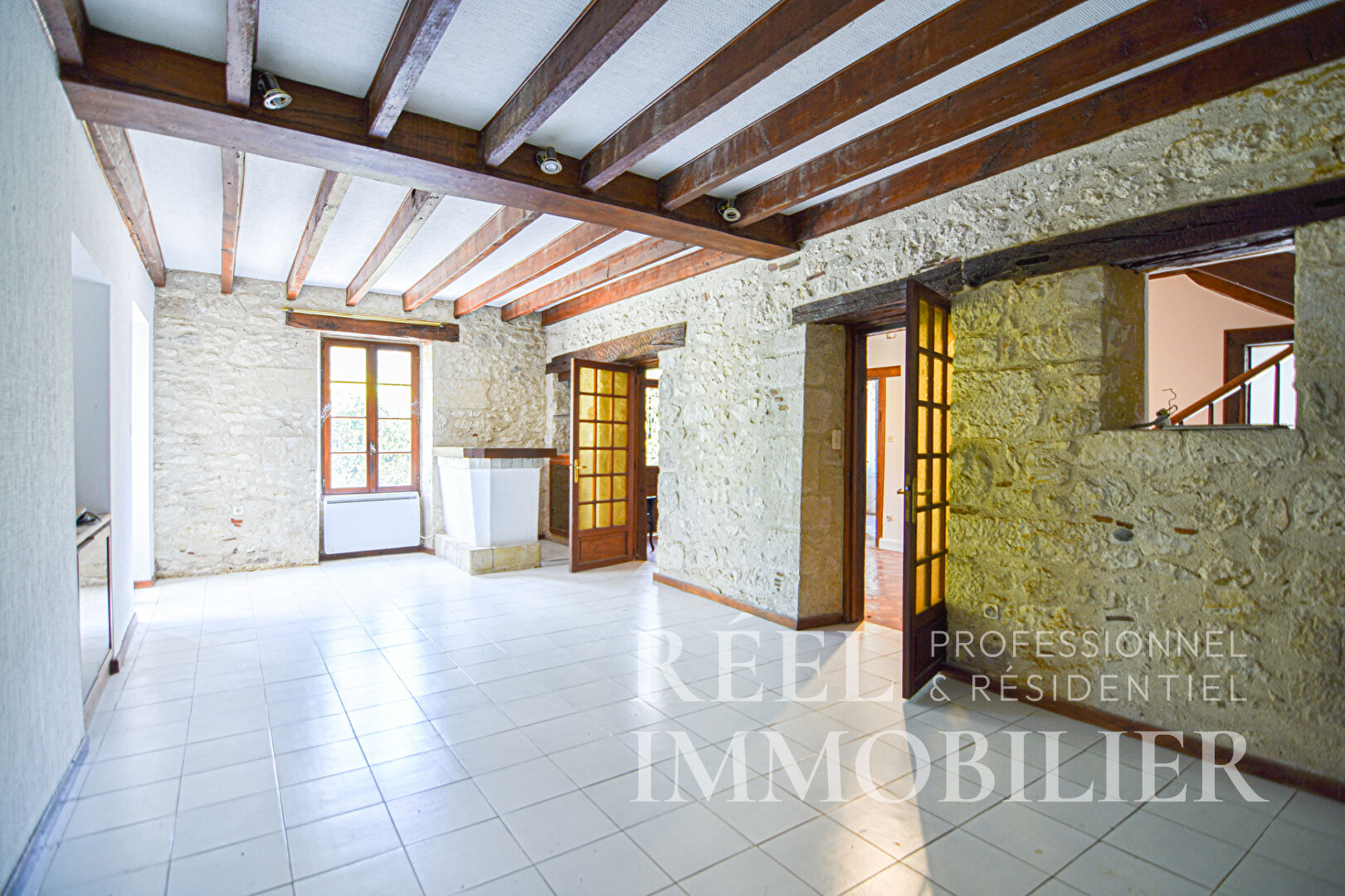 ... résidentiel, ancienne maison individuelle de plain-pied en pierre en cours de rénovation. Les pièce...