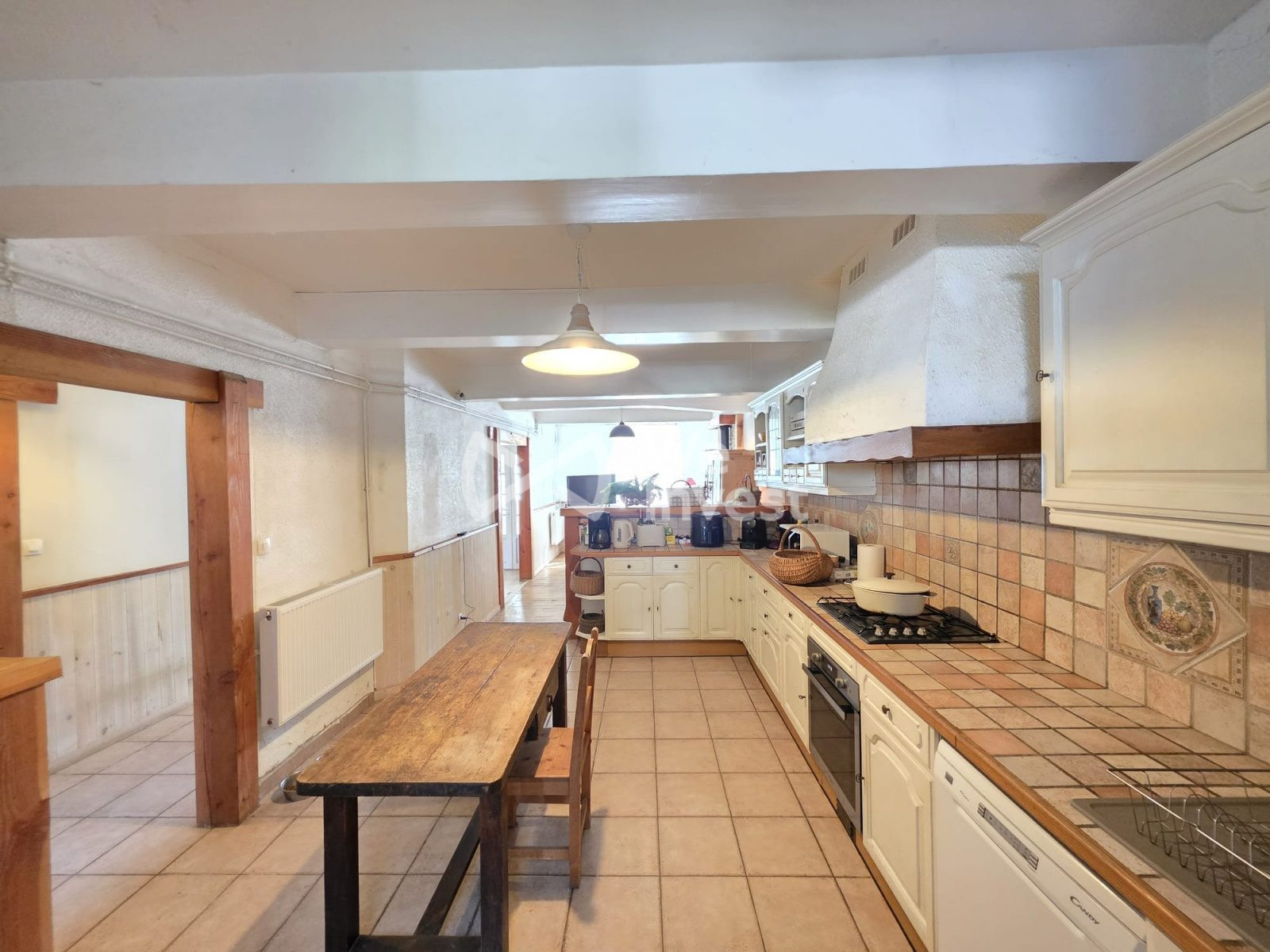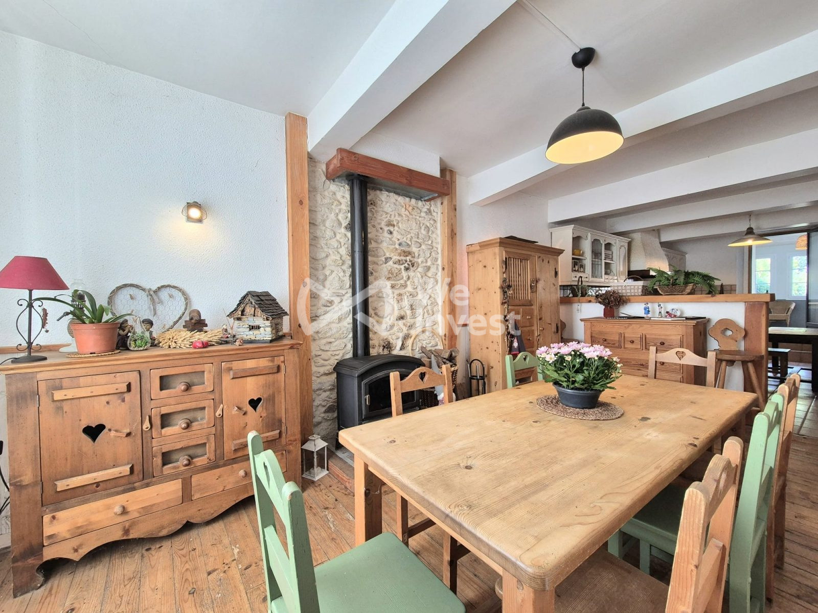 ...Rez-de-chaussée : séjour lumineux avec poêle à bois, grande cuisine ouverte, salon avec cheminée,...