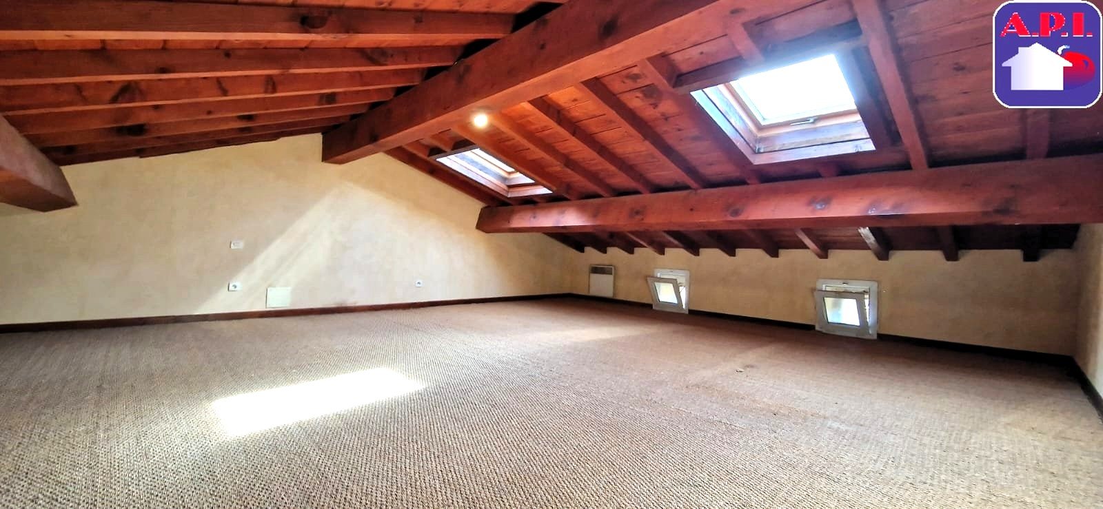 ...Belle pièce à vivre avec cuisine ouverte équipée (cheminée possible, conduit existant), wc séparé...