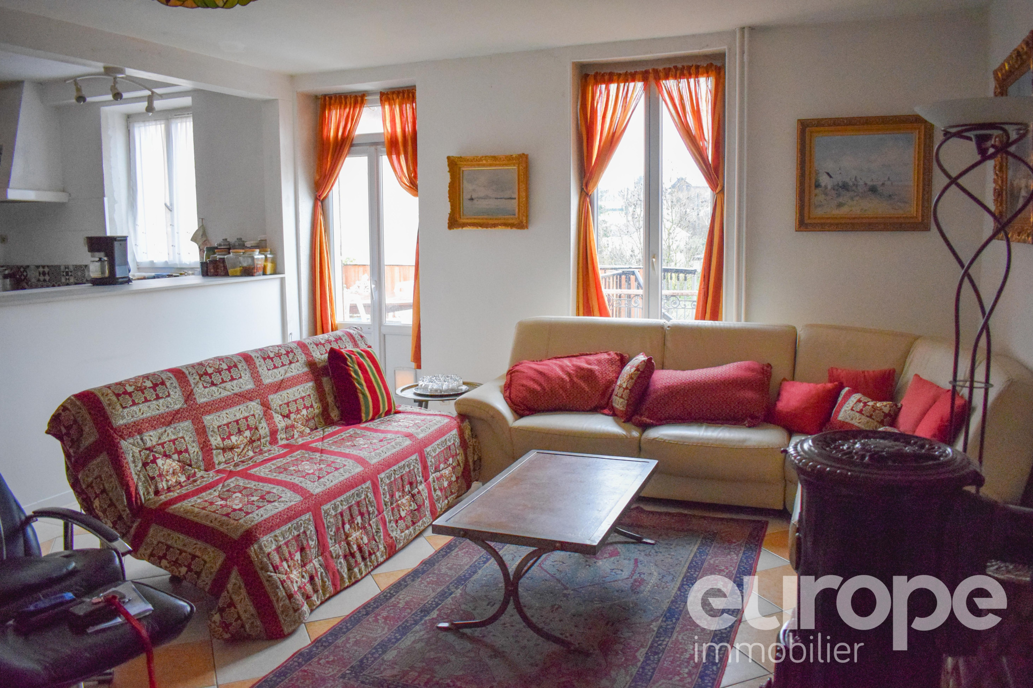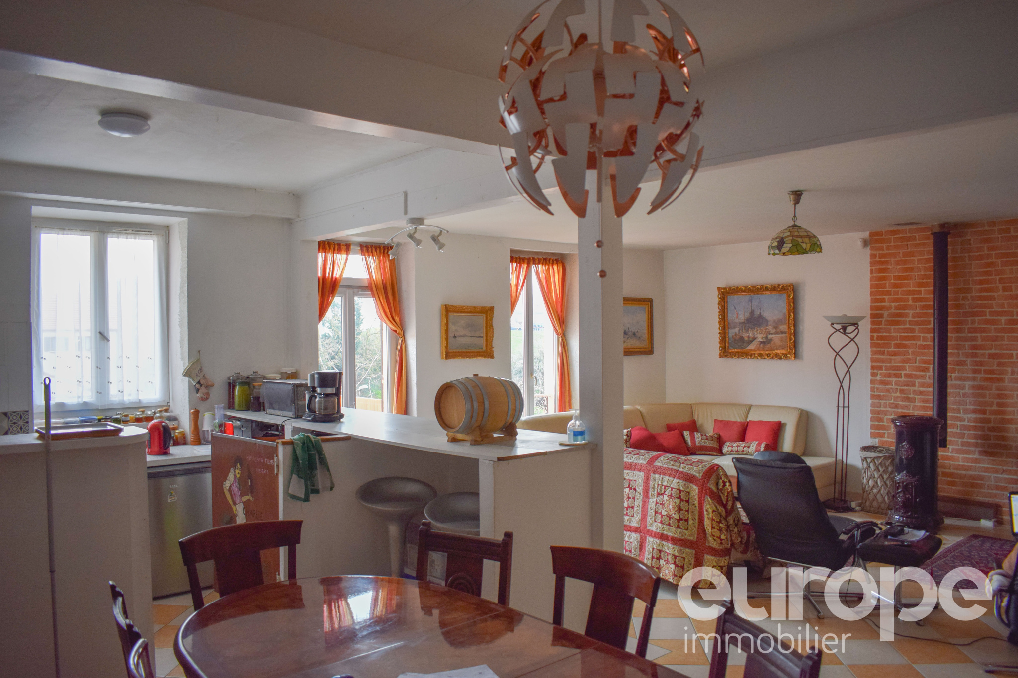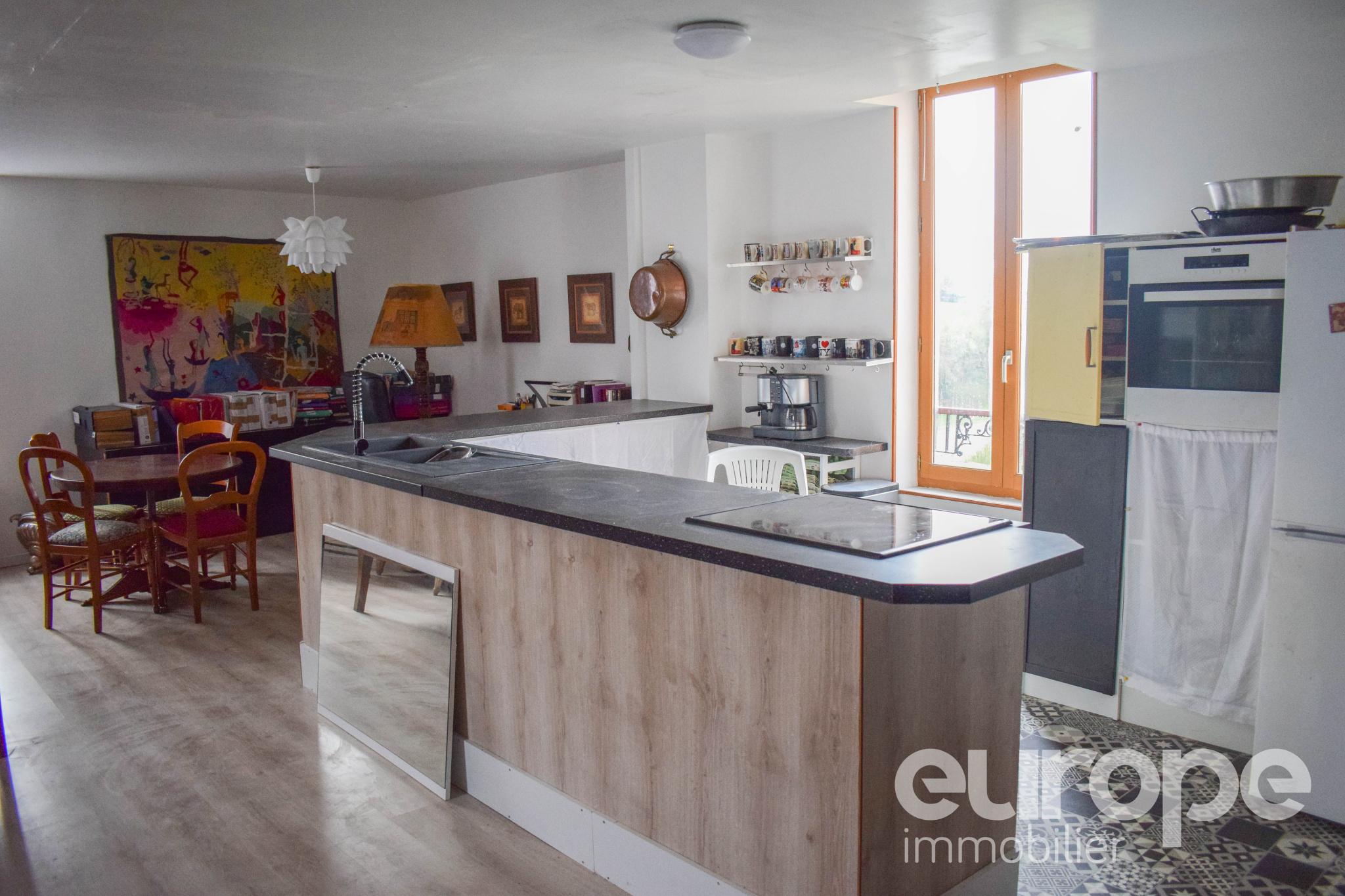 ... un séjour lumineux de 28 m2 avec insert et accès direct à la terrasse, ainsi qu'une cuisine aménagé...