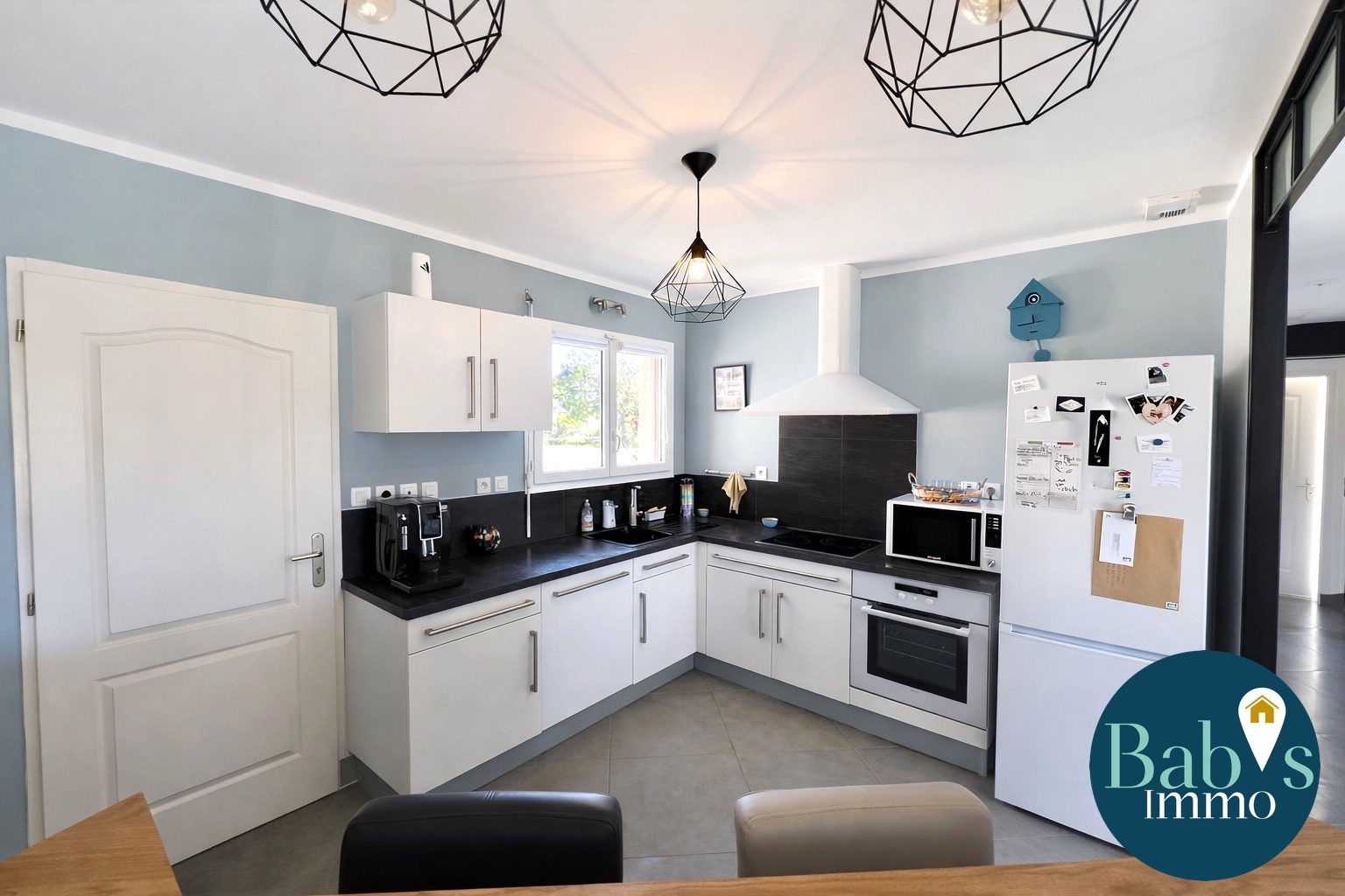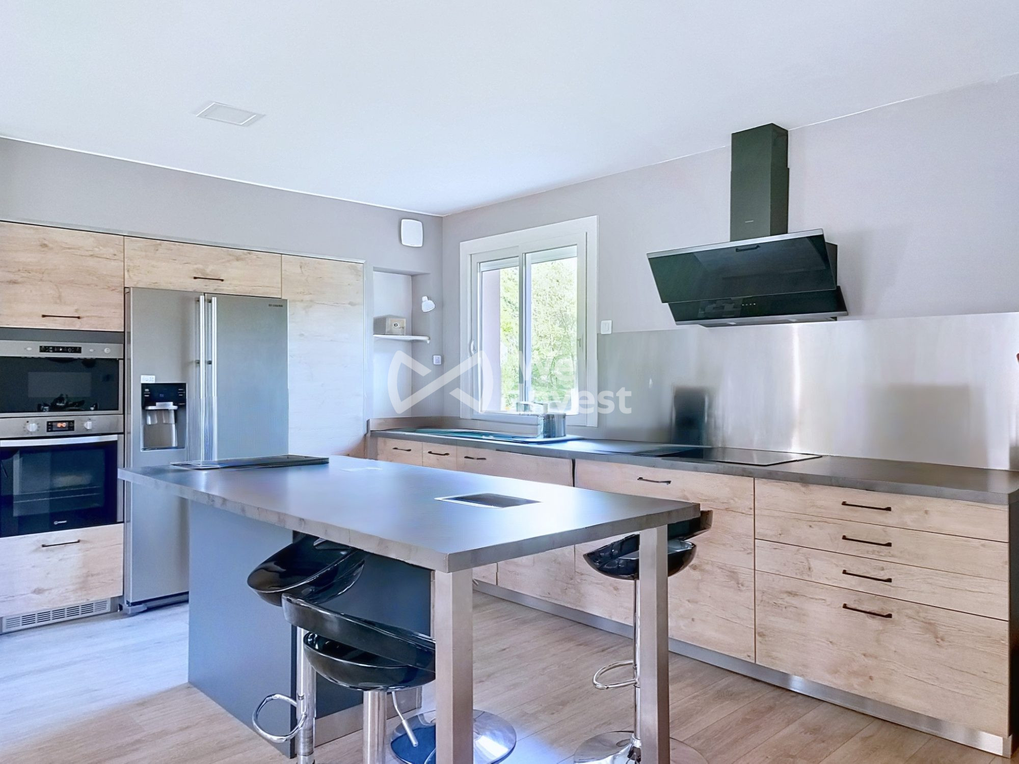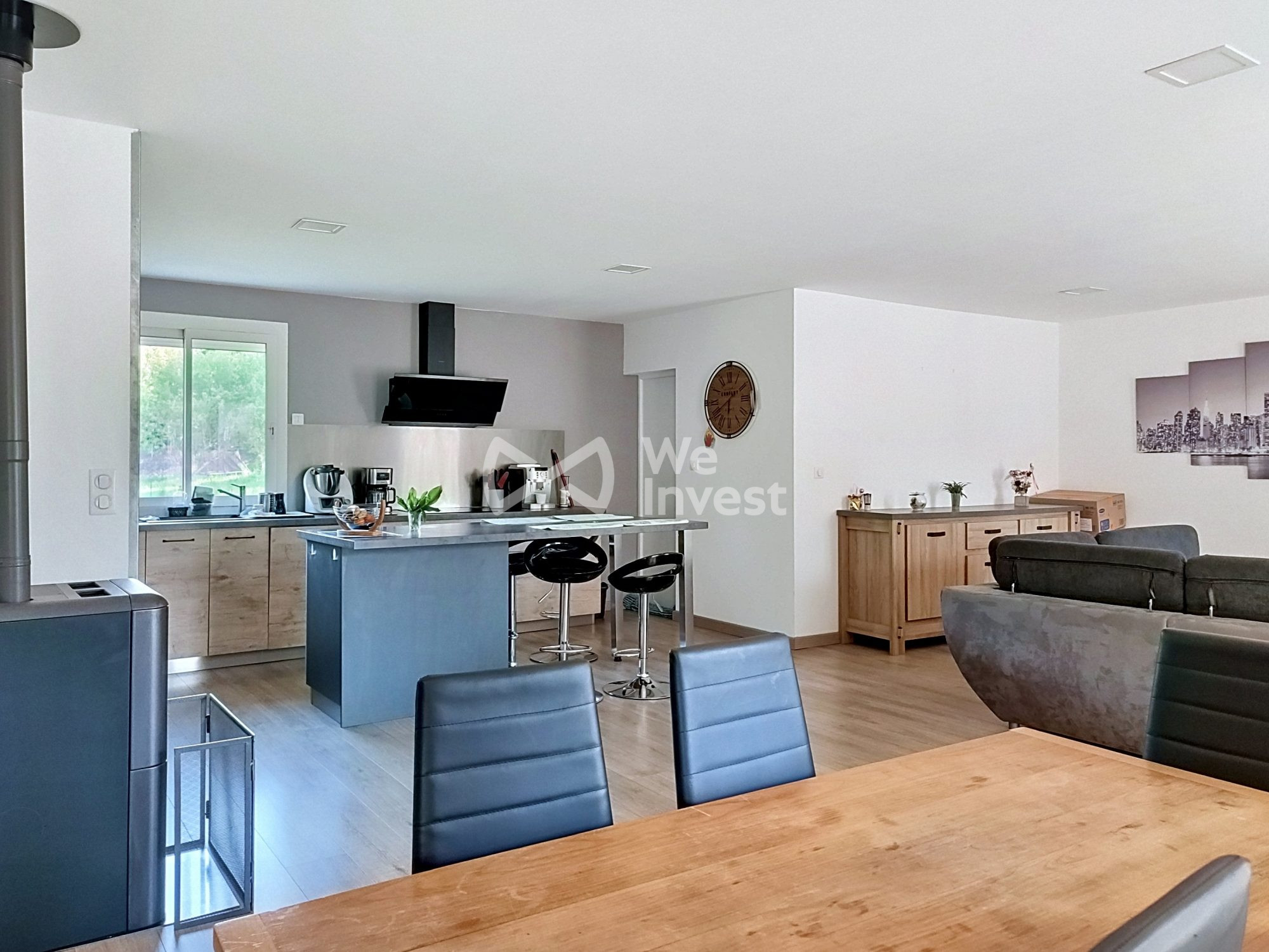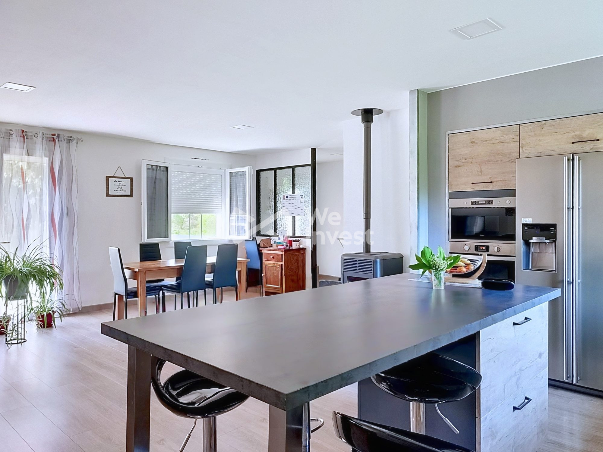 ...Le séjour de 50m² s'ouvre généreusement sur la cuisine américaine aménagée et équipée, avec deux...