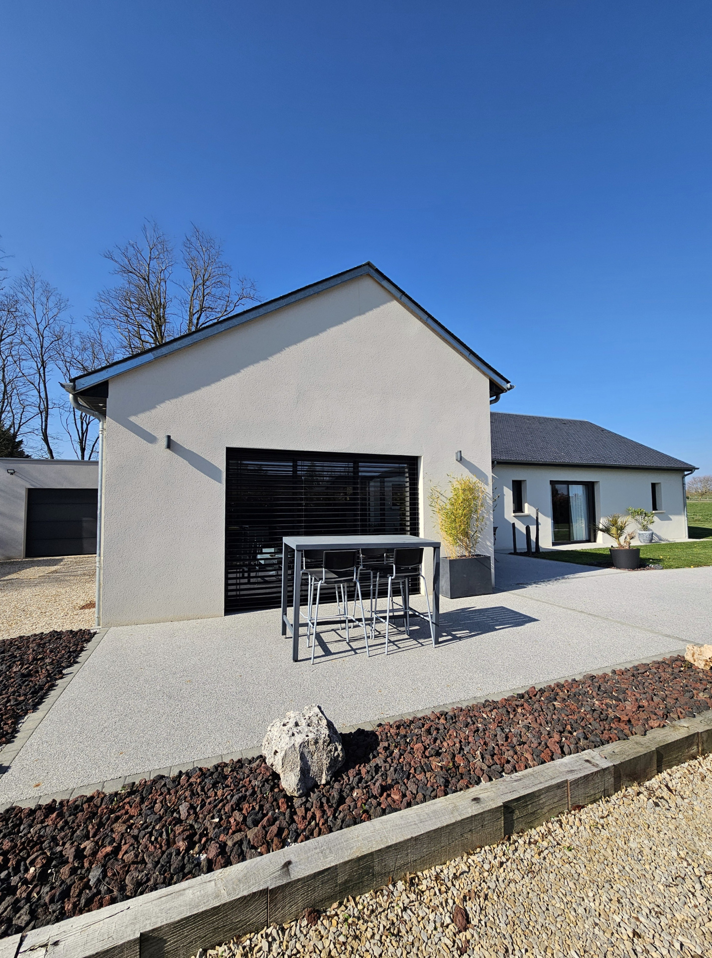 ...Un jardin fonctionnel et paysagé avec un professionnel, vendu avec son jacuzzi, sa douche...