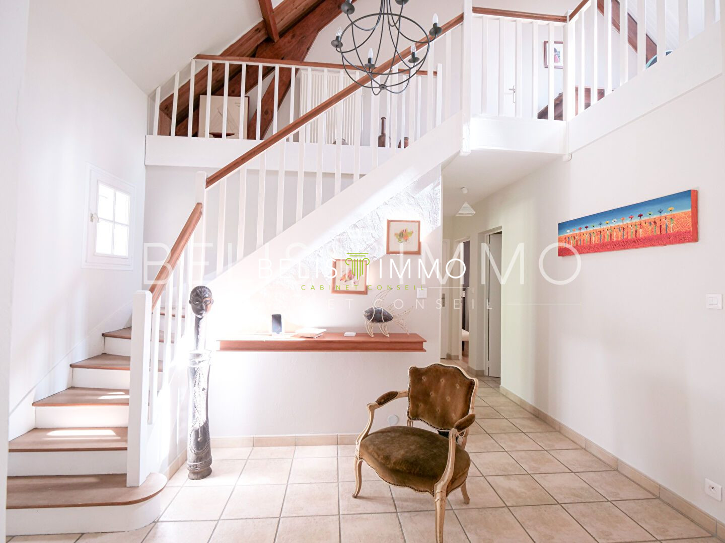 ...A l'étage, palier déservant 3 chambres, un dressing une salle d'eau...