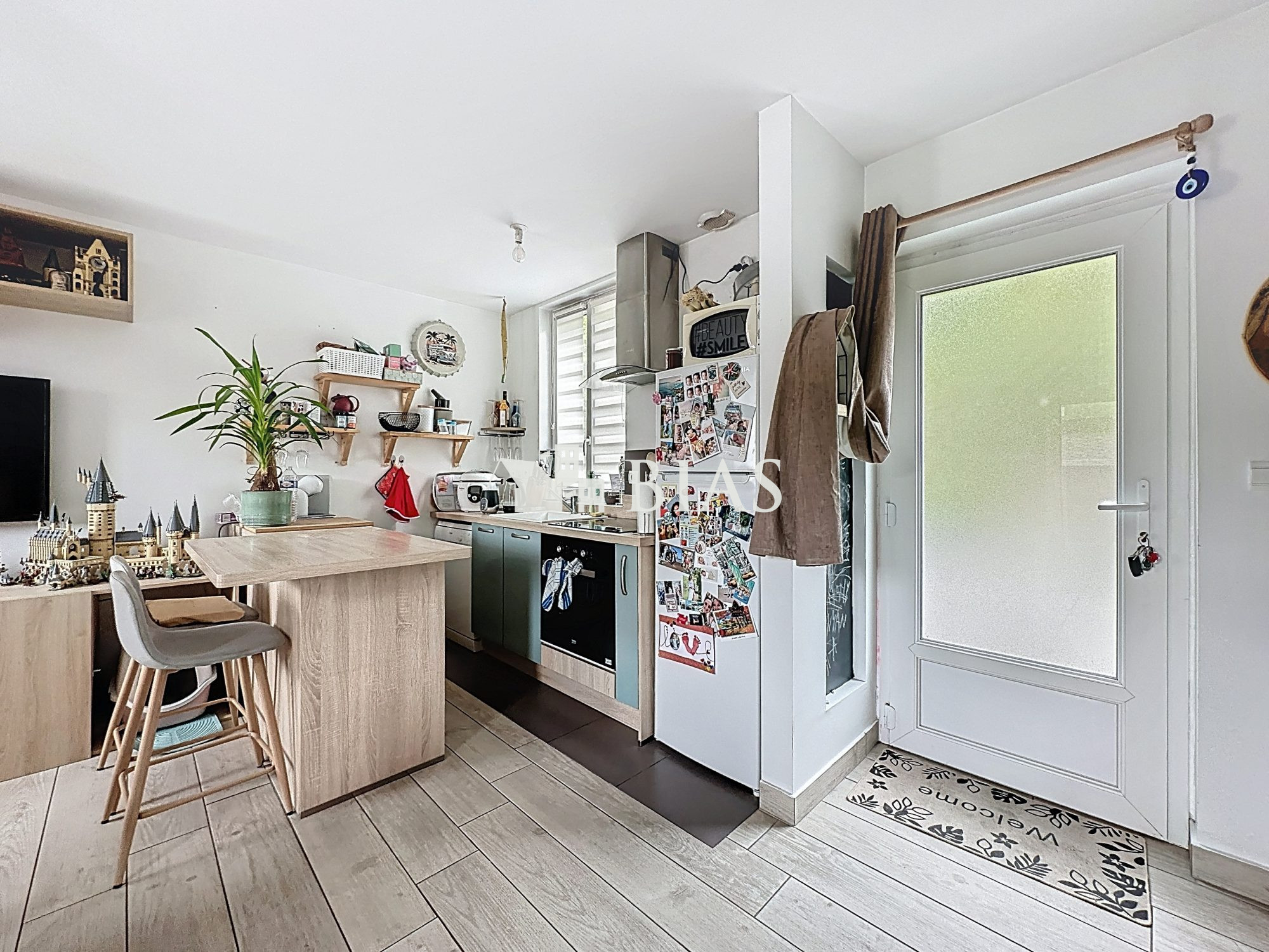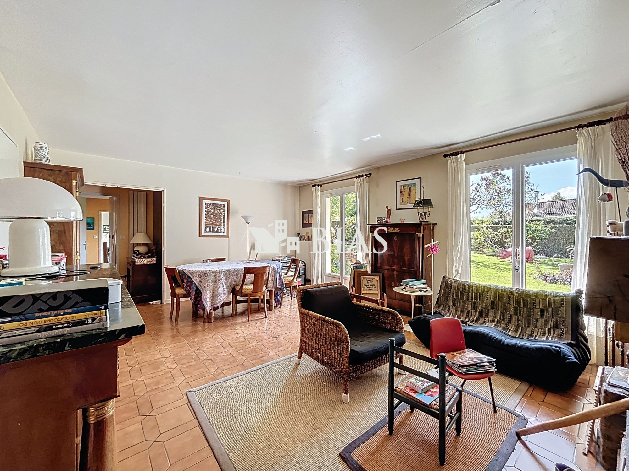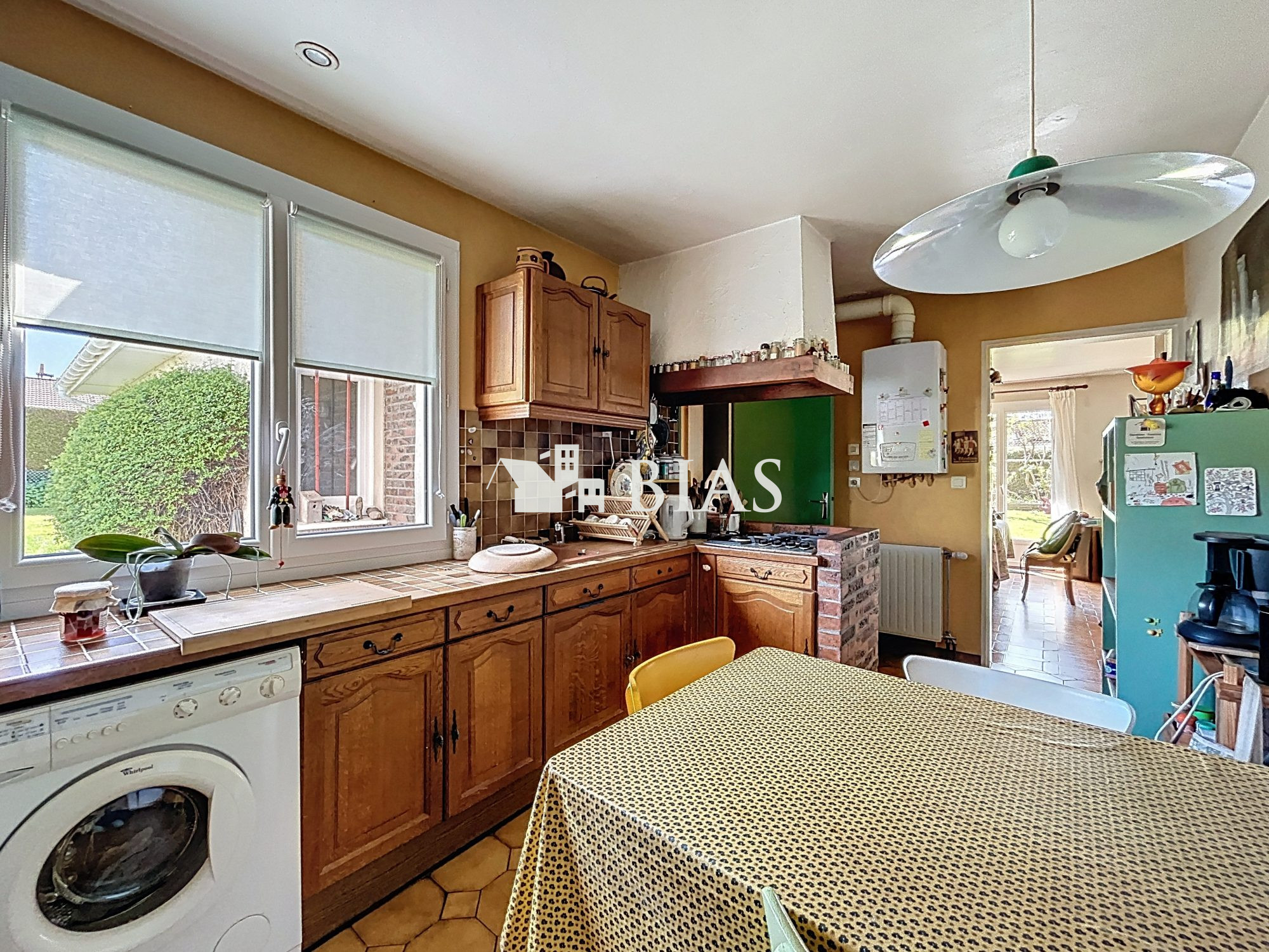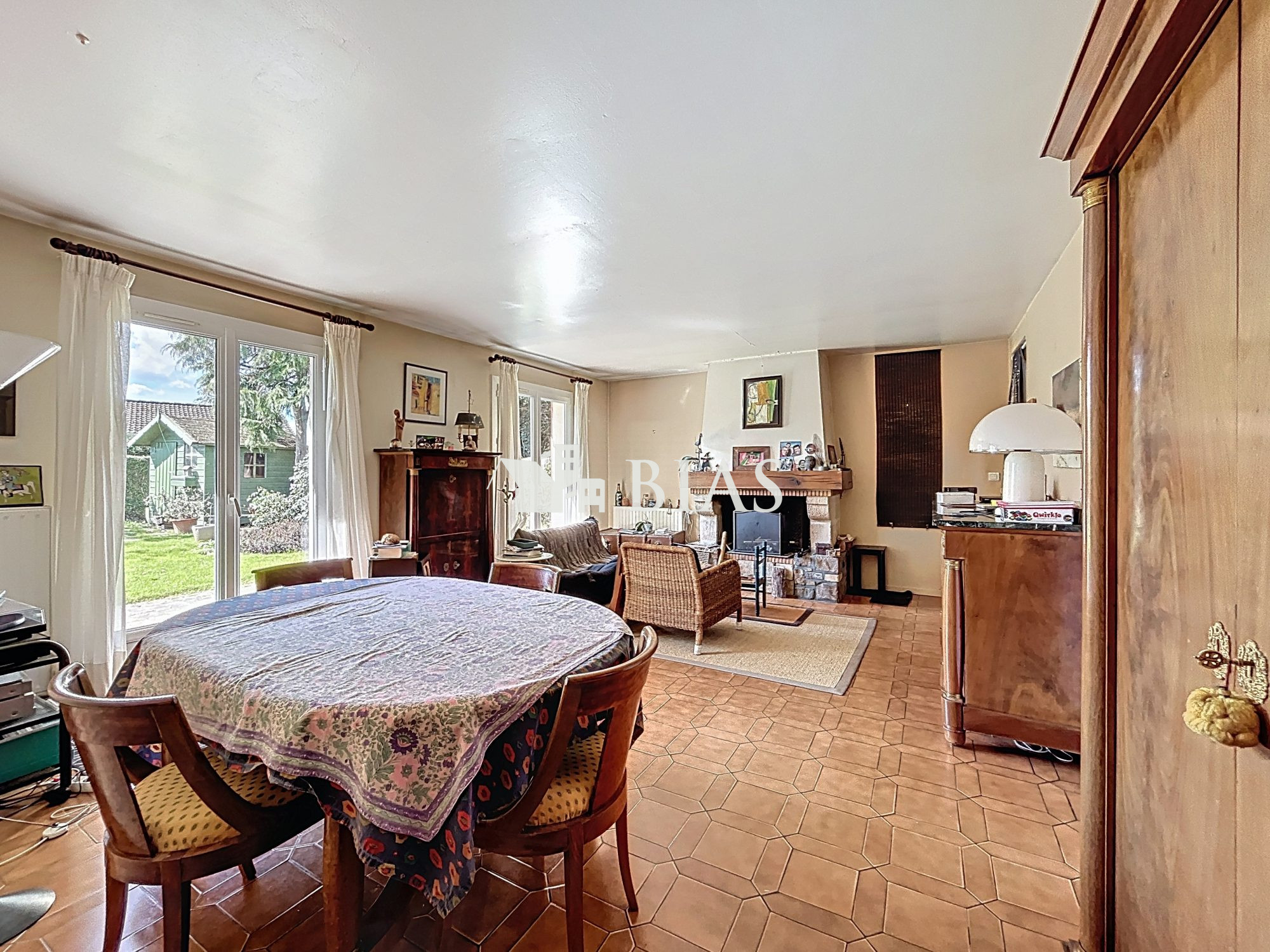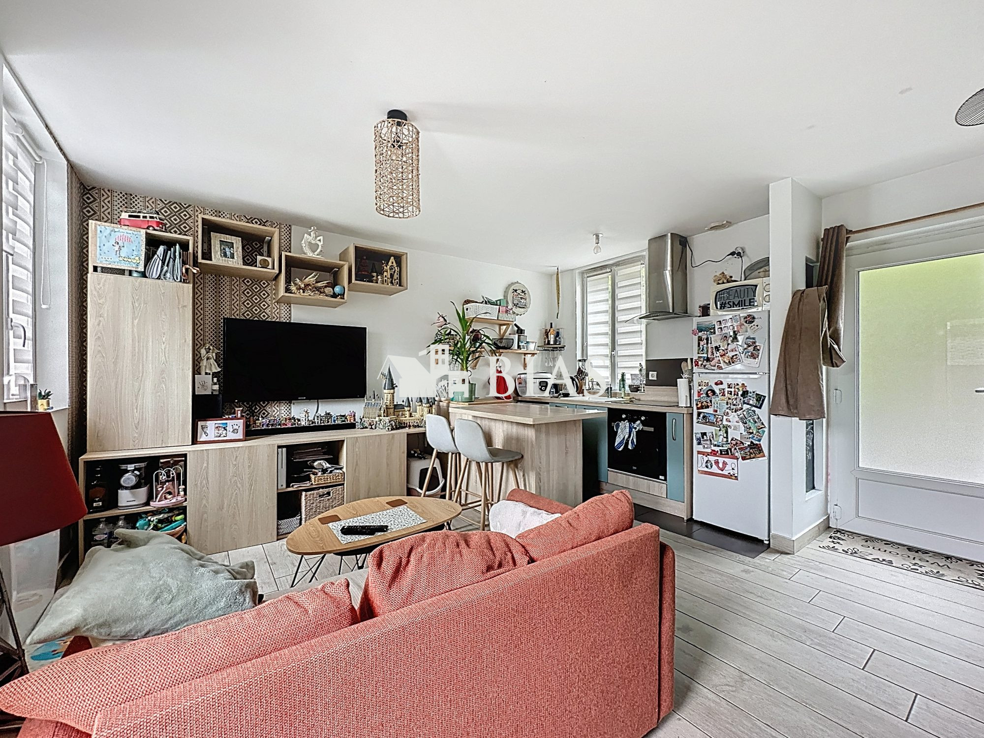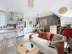 ...Au rez-de-chaussée, découvrez une agréable pièce de vie lumineuse avec salon, espace salle à...