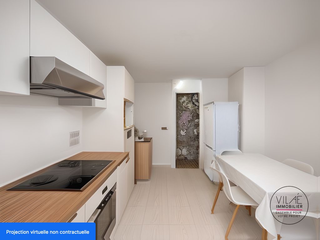 ...Le rez-de-chaussée, d'environ 65 m², comprend une entrée, une cuisine équipée de 13,79 m²...