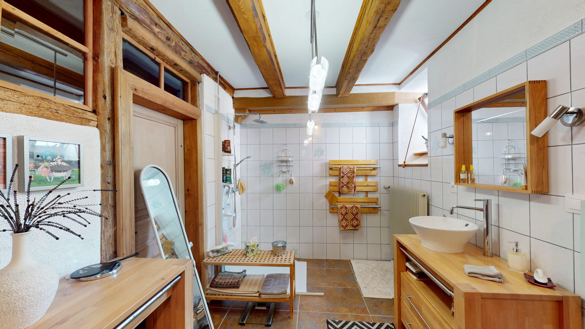 ...À l'étage, deux belles chambres, une salle de bains avec douche et baignoire, une chambre/bureau,...