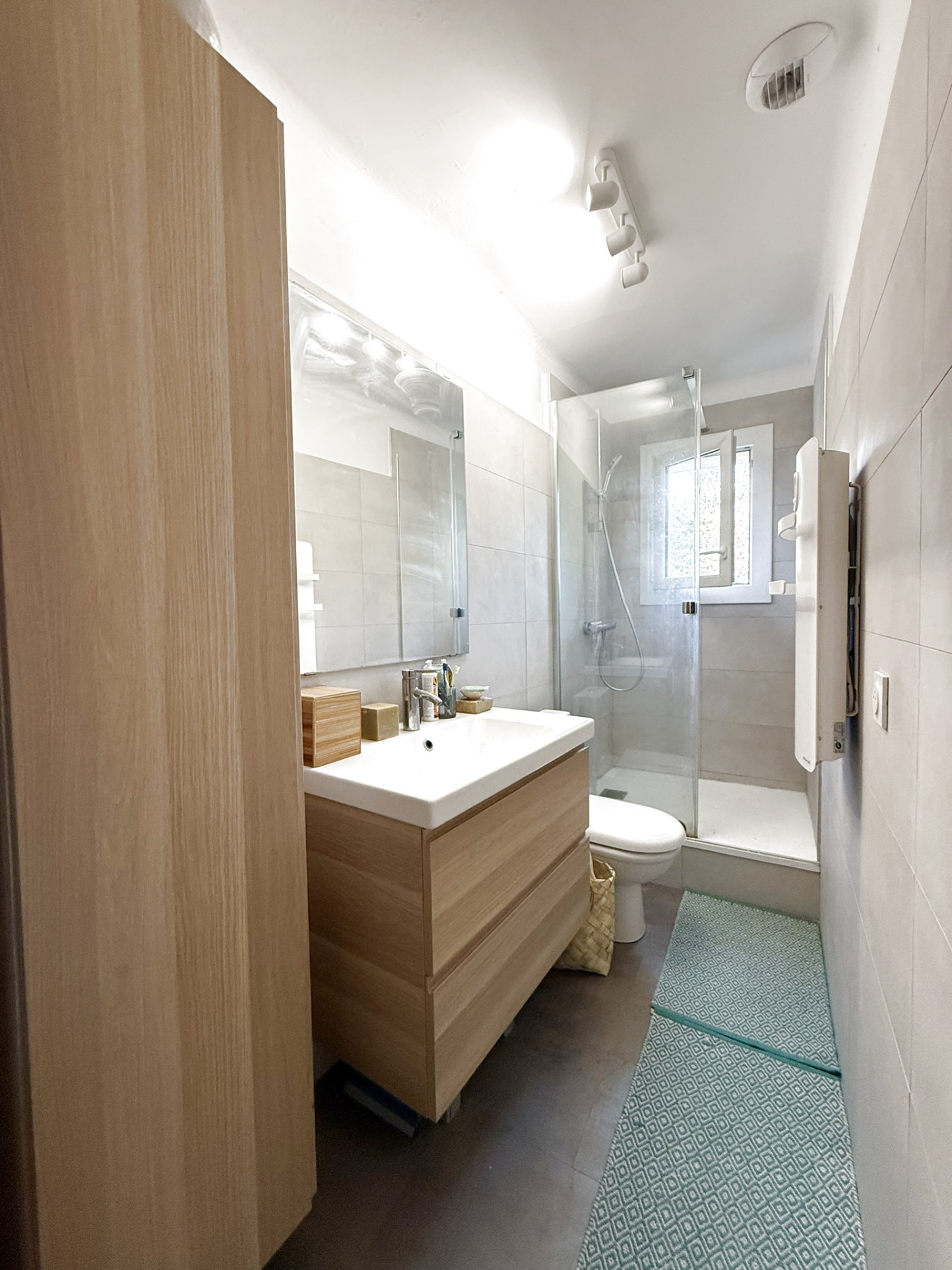 ...Rénovée en 2021, entrez dans la pièce de vie de 45m ² traversante avec salon et salle à manger...