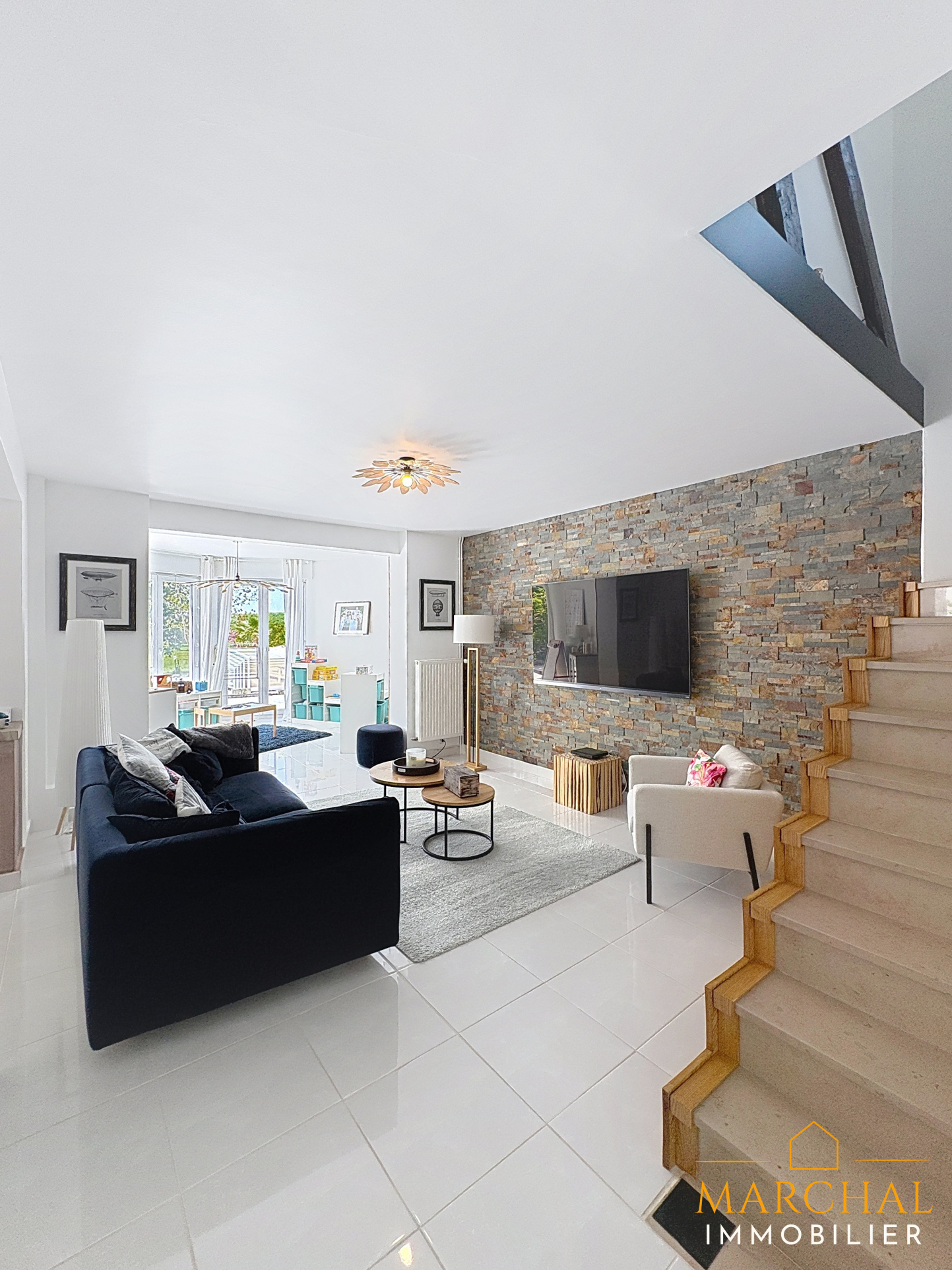 ...Sous sol semi enterré : entrée carrelée, dégagement, pièce salle de jeux, sport ou bureau carrelé...