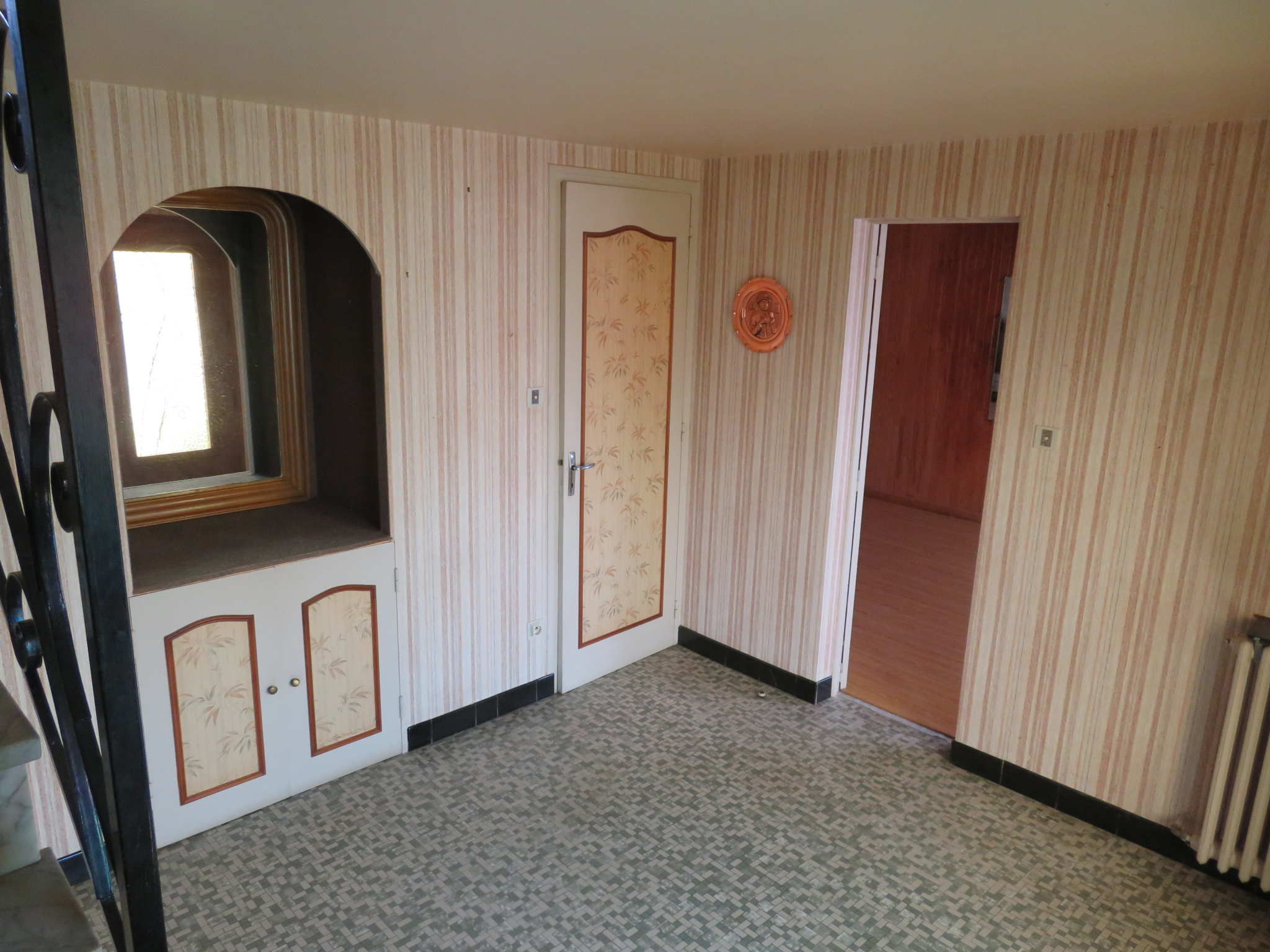 ...Au rez-de-chaussée, vous accédez à une entrée, un salon-séjour avec insert et à une cuisine...