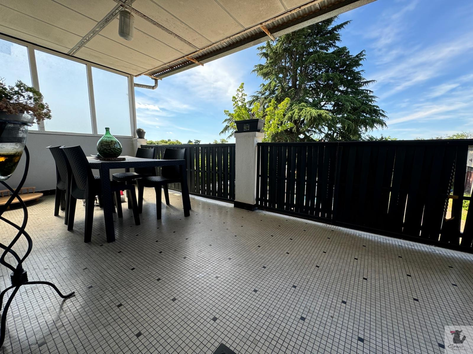 ...Grande terrasse de plus de 80 m2 avec petite piscine pour profiter pleinement du beau parc...