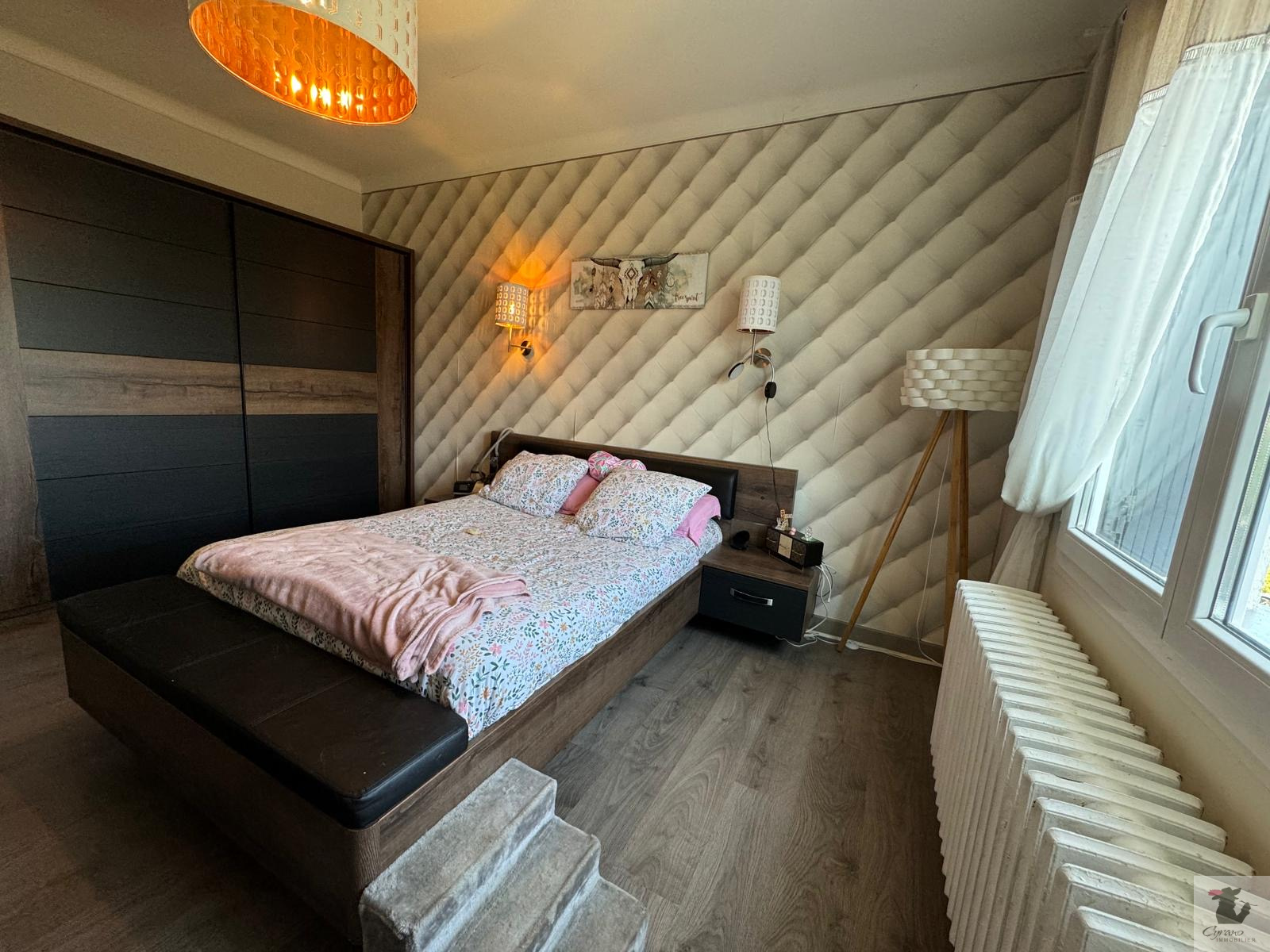 ...Elle se compose de deux grandes chambres dont une avec dressing, d'une cuisine équipée ouverte...