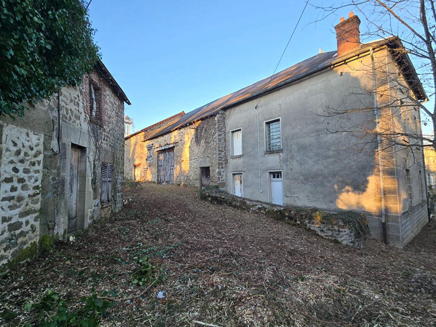 ...L'ensemble comprend deux grandes granges, une petite maison en pierre à rénover entièrement et un...