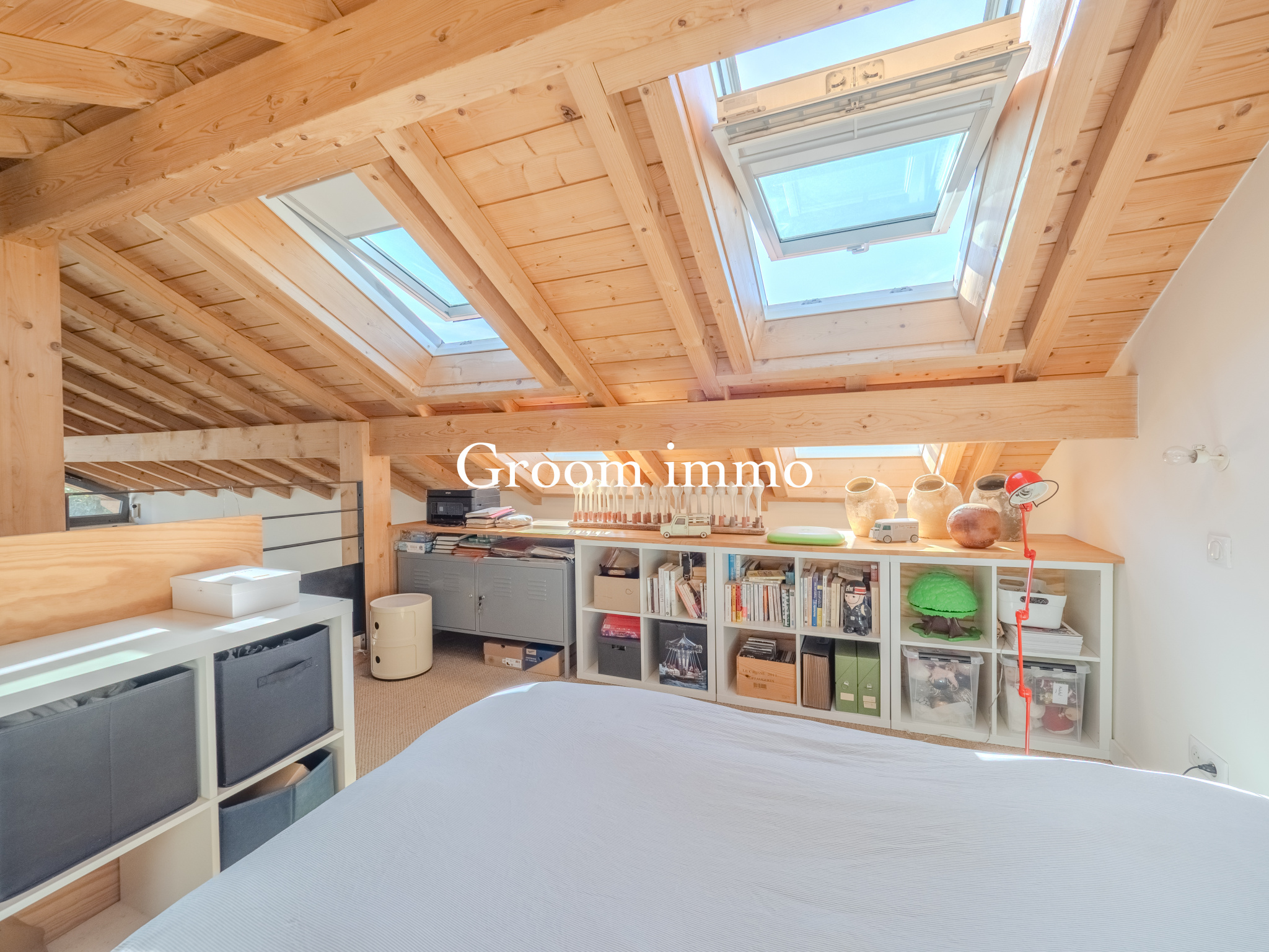 ...Vous trouverez au 1er niveau un séjour cathédrale donnant sur le jardin , une cuisine américaine,...