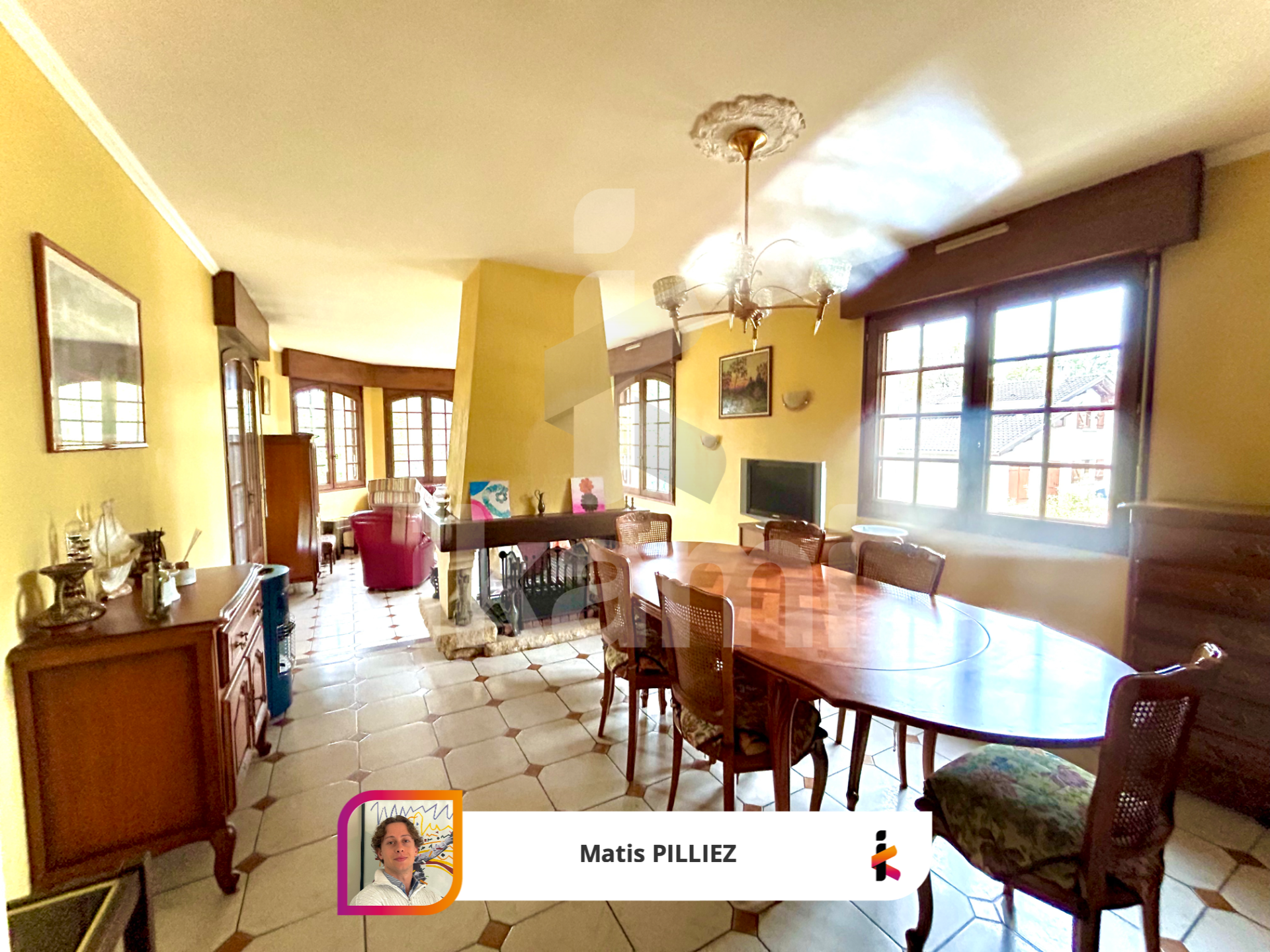 ... séjour de 37 m2, lumineux grâce à de larges ouvertures, et équipé d'une cheminée centrale qui appor...