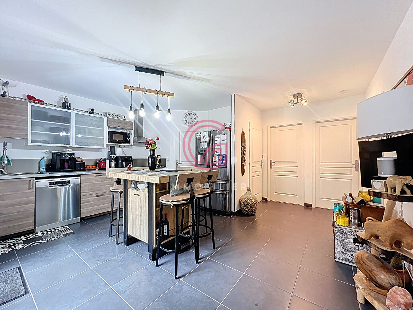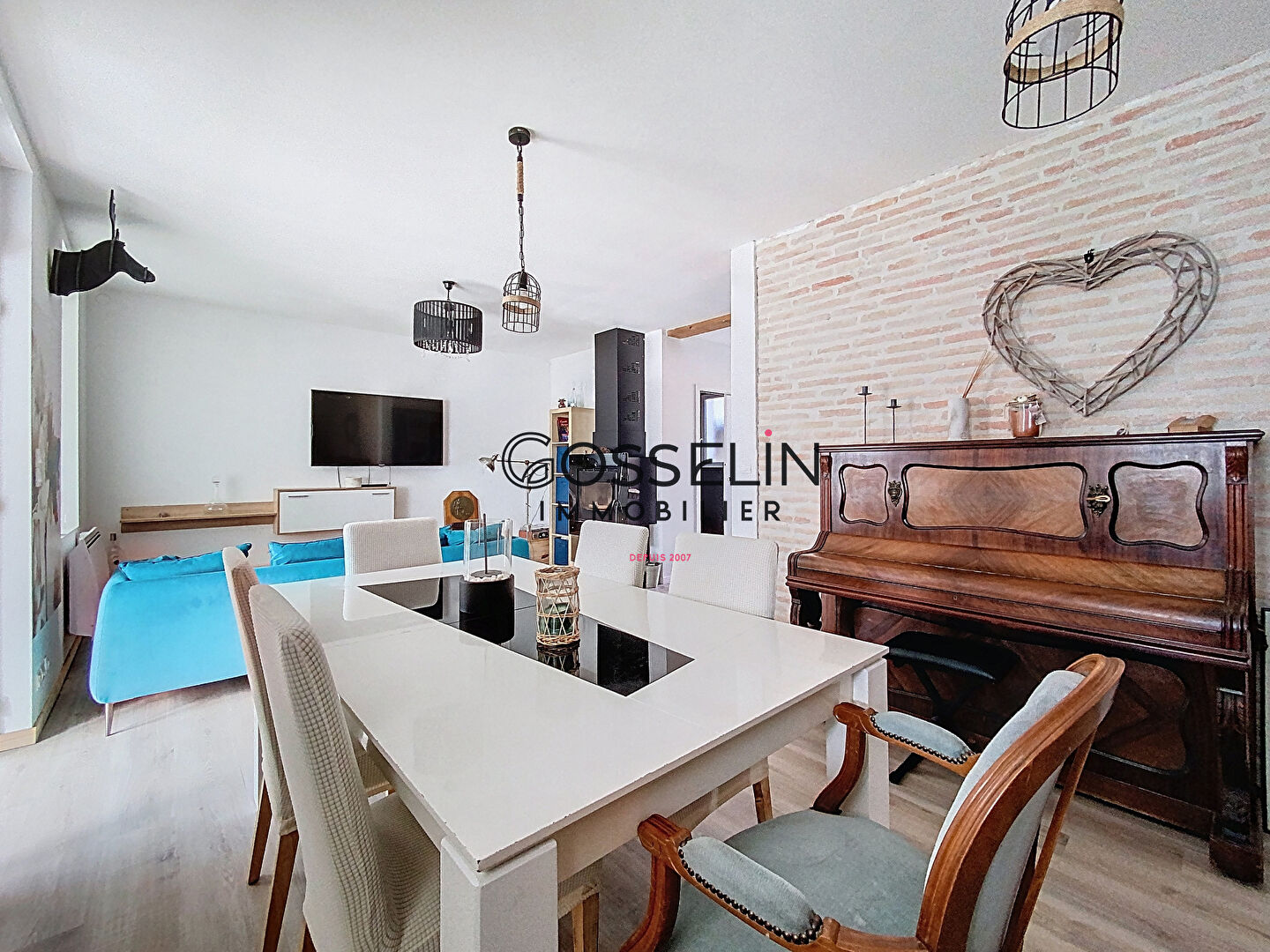 ...Vous trouverez un salon/salle à manger ouvert sur une cuisine aménagée et équipée d'environ 35...