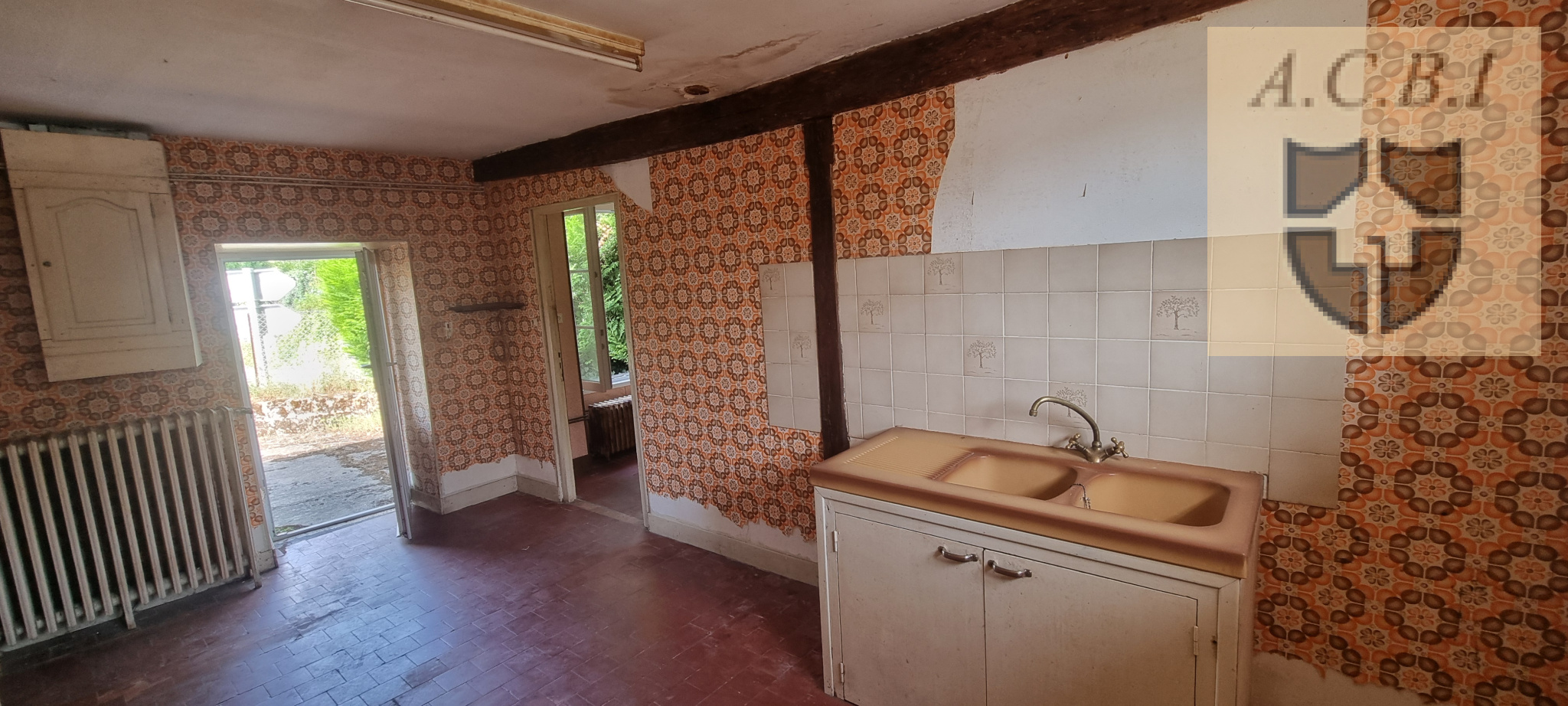 ...Elle se compose: entrée avec poele à bois, cuisine, salon/séjour d'env 30 m2, chambre, wc...