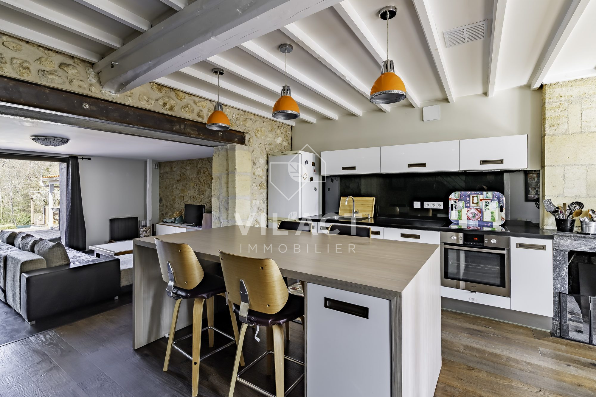...Le rez-de-chaussée, la maison s'organise autour d'une agréable pièce de vie avec cuisine...