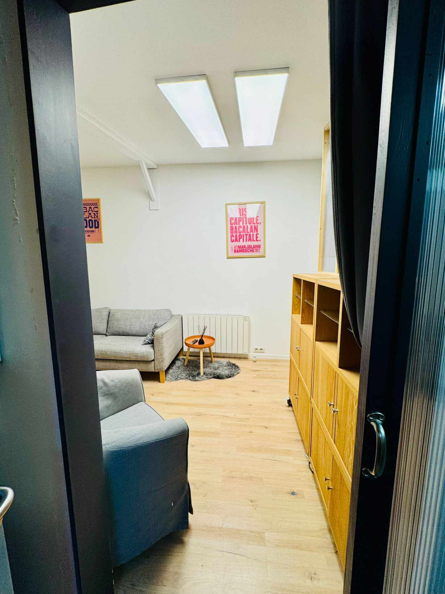 ...Maison en duplex inversé avec cour , comprenant , une entrée, un séjour avec une double...