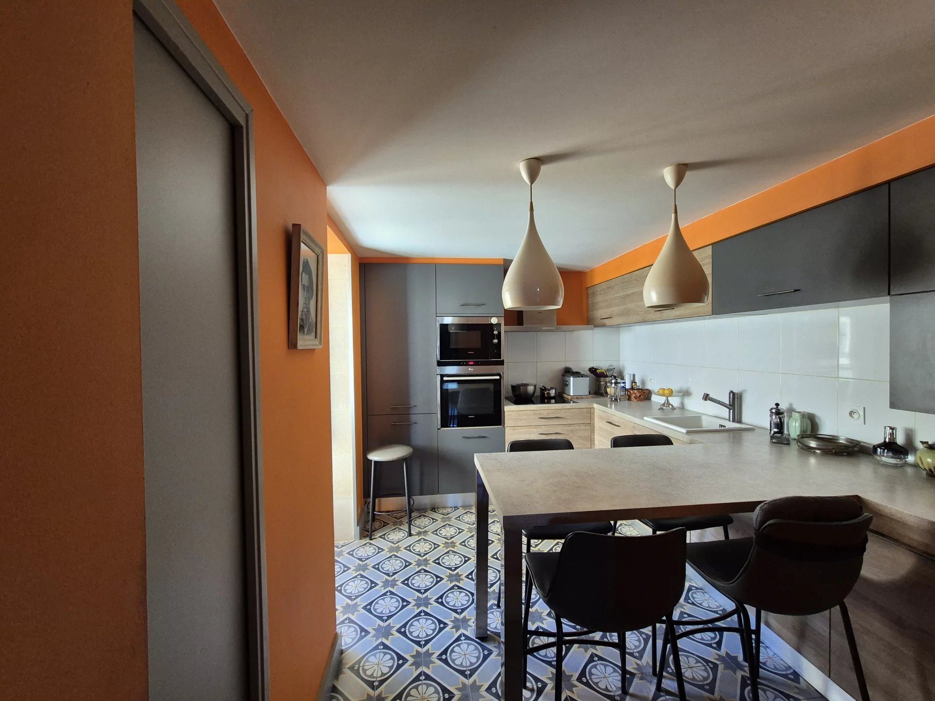 ... conduit à une cuisine équipée et aménagée, pensée pour la fonctionnalité et l'esthétique. Un WC ind...