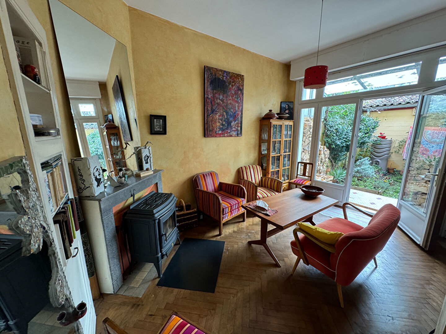 ...Au rez-de-chaussée, vous trouverez une entrée avec carreaux de ciment, un double séjour...