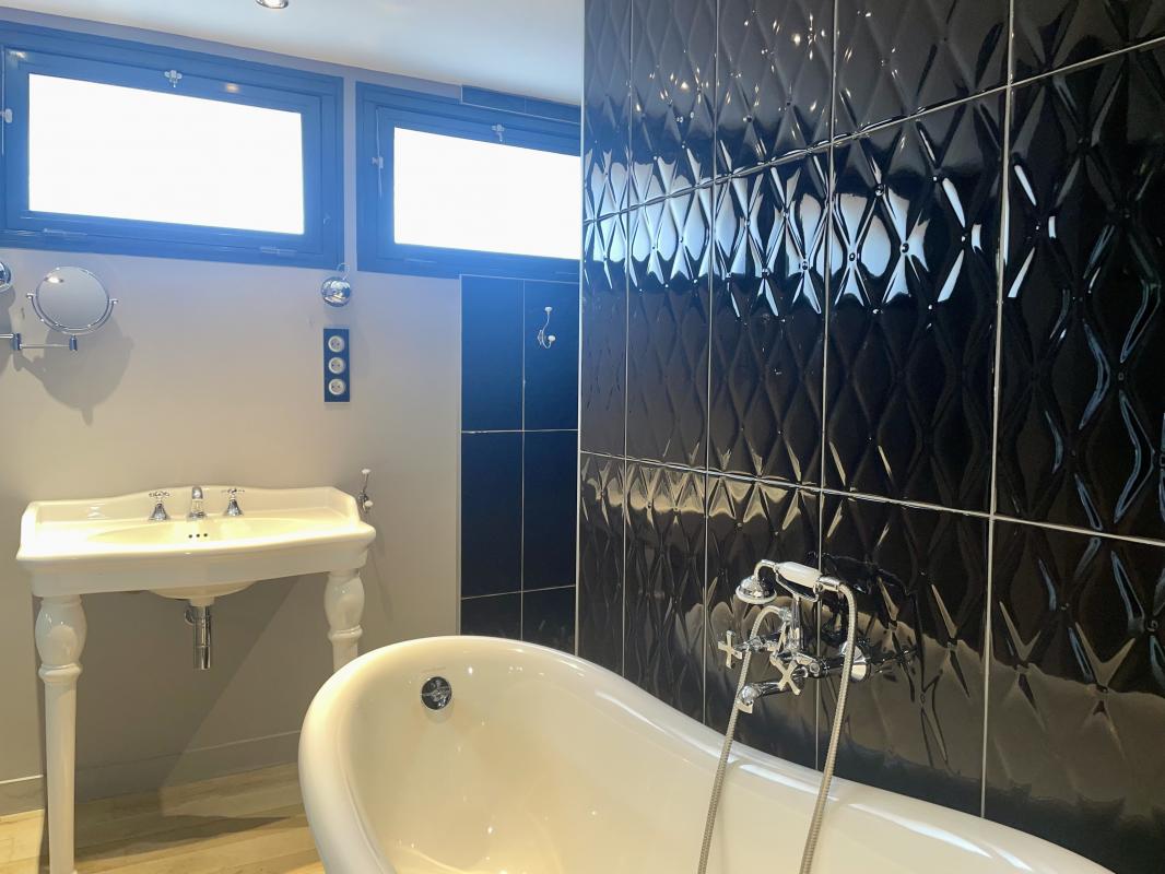 ... une chambre avec mezzanine et salle d'eau ainsi qu'une suite parentale avec salle de bains et grand...