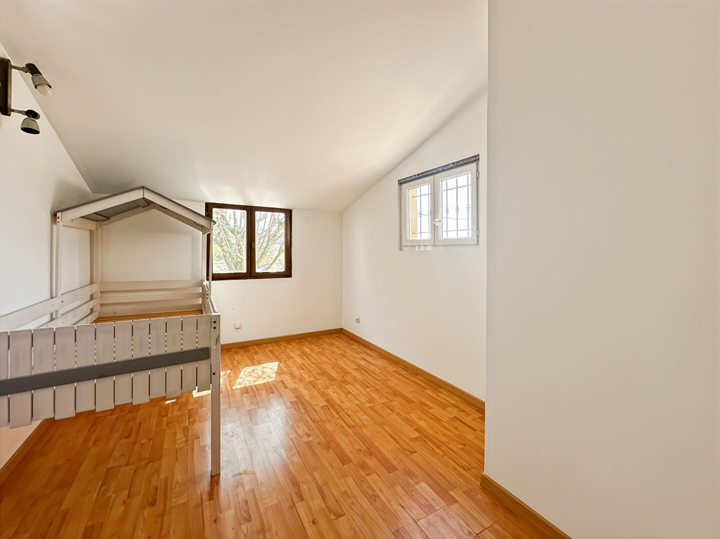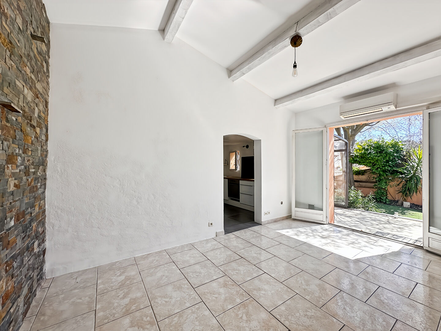 ...En rez-de-chaussée, pièce de vie lumineuse avec porte ajourée et fenêtre composée d'un espace...