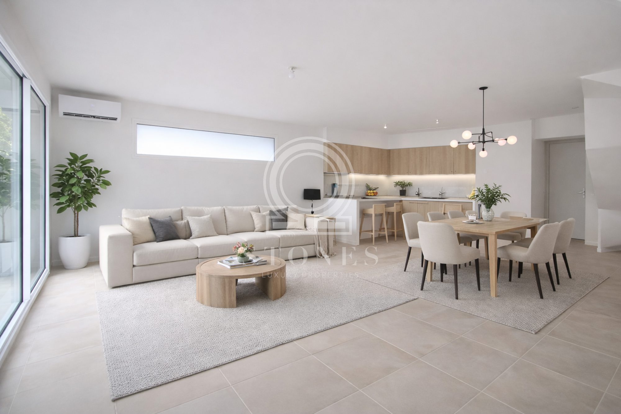 ...Le rez-de-chaussée s'organise autour d'une vaste et belle pièce de vie baignée de lumière...