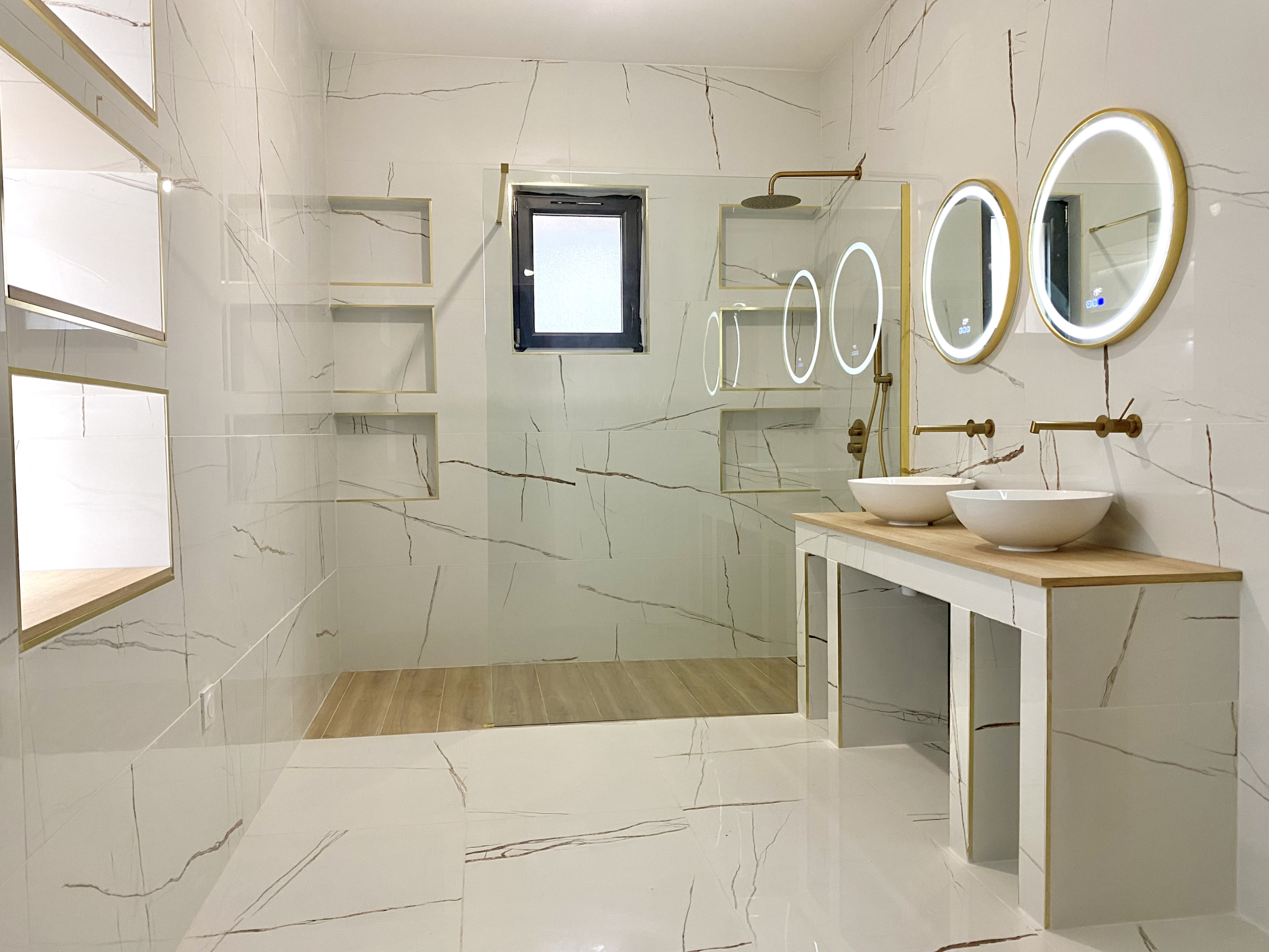 ...Un escalier avec éclairage led donnant accès à l'étage où nous retrouvons un wc et 3 grandes...
