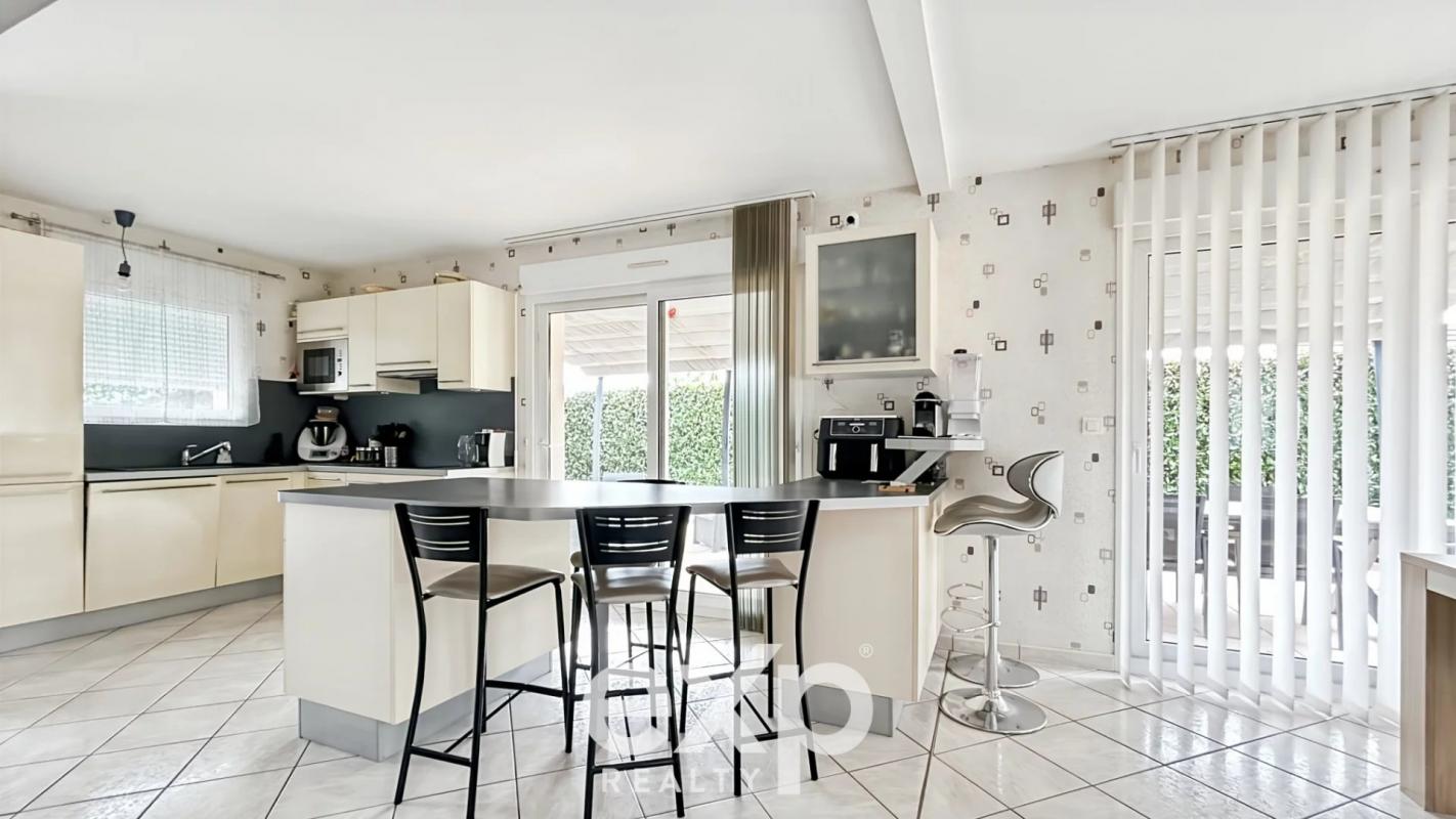 ...La maison : Grande pièce de vie traversante baignée de lumière Cuisine ouverte donnant sur le...