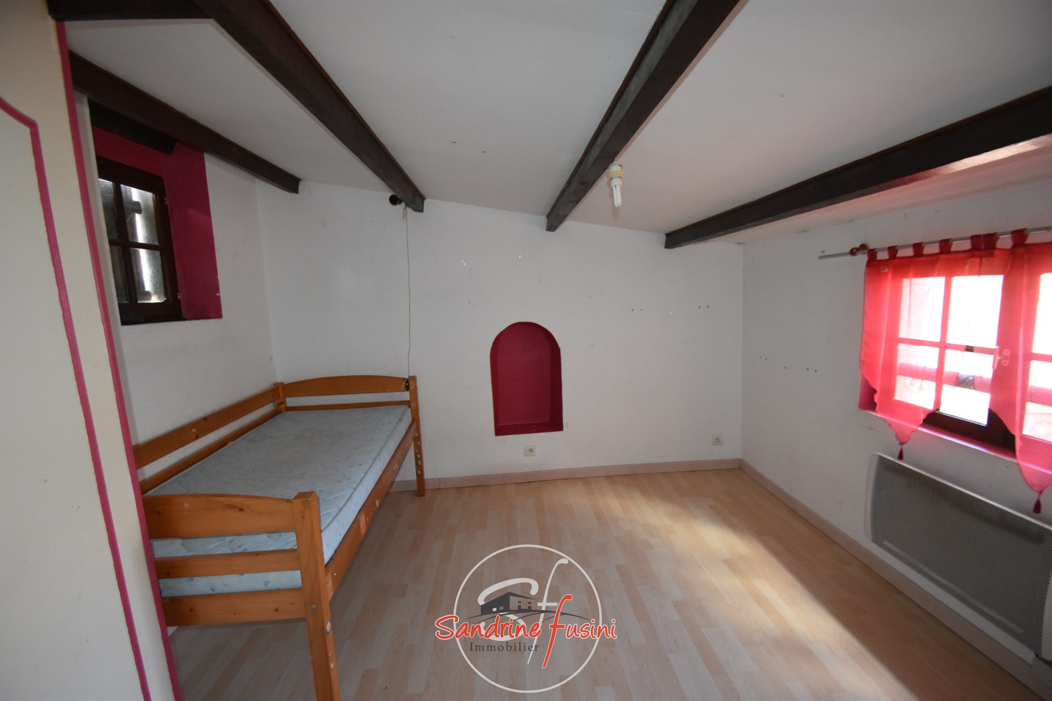 ...A l'étage, on retrouve deux chambres, une vaste pièce (idéale pour une chambre parentale)...