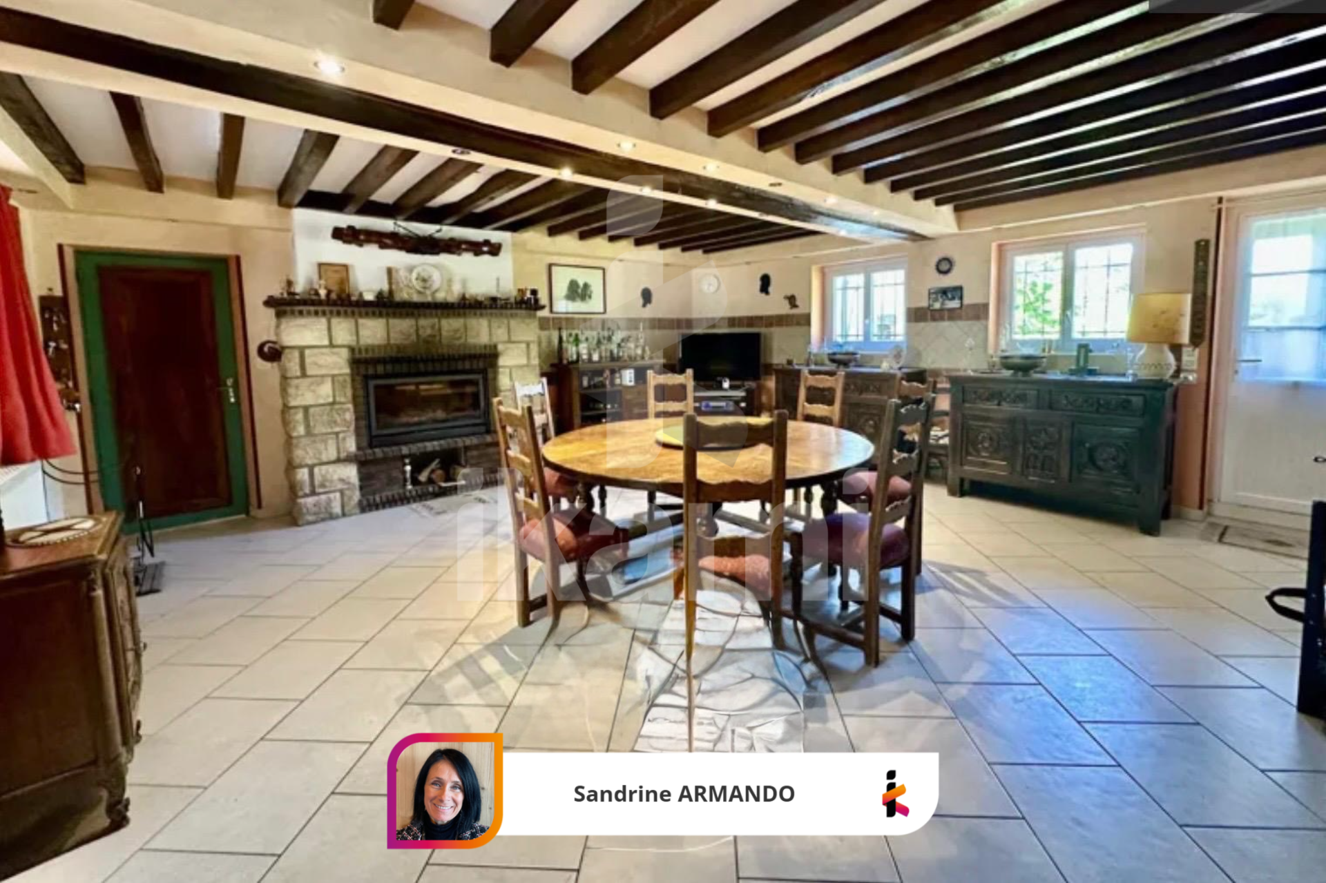 ...Elle offre une vaste pièce de vie lumineuse avec cuisine américaine équipée, poêle à bois et à...
