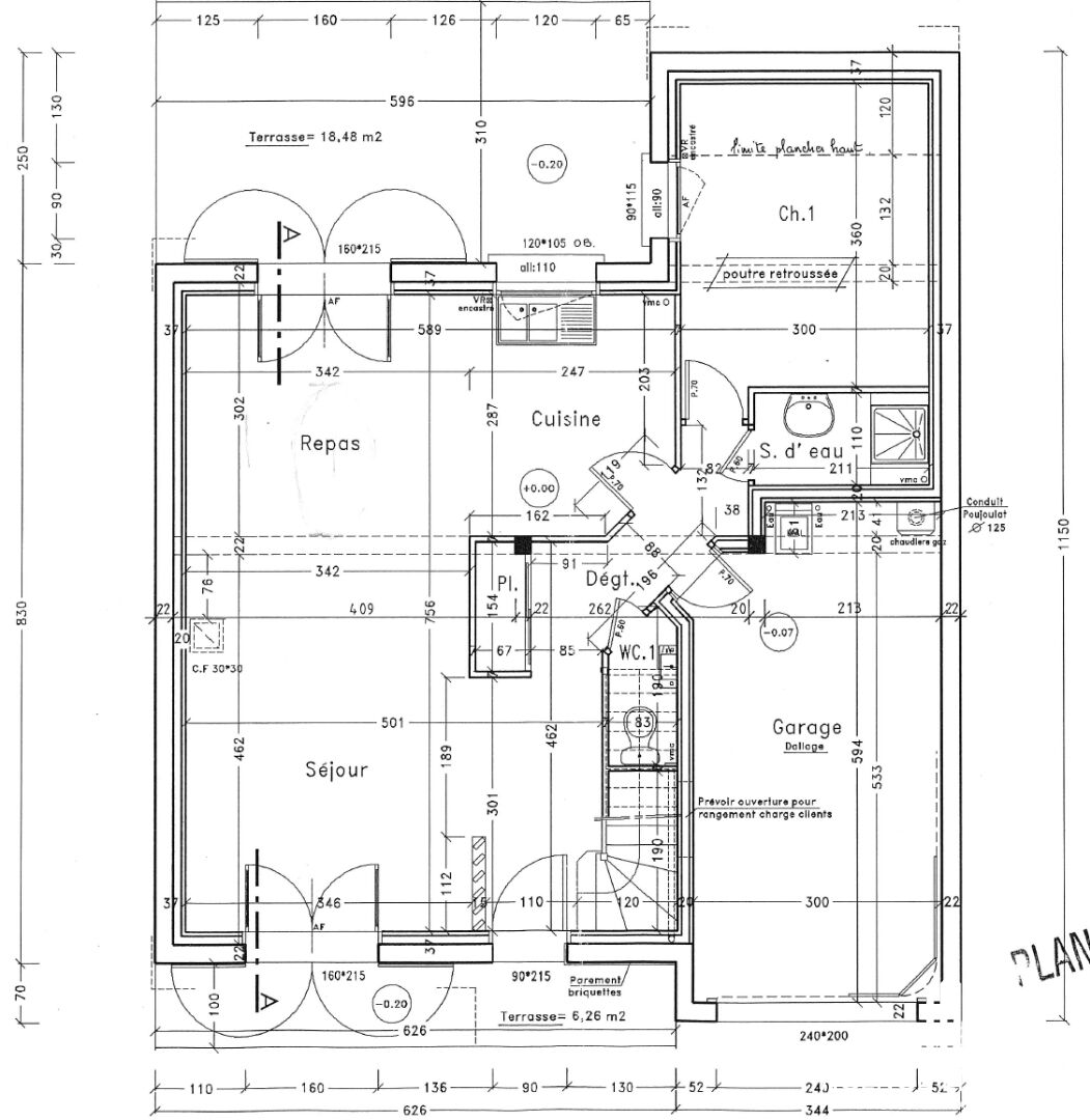 ...Au rez-de-chaussée: Une entrée donnant sur un salon séjour avec cuisine ouverte, une chambre, une...