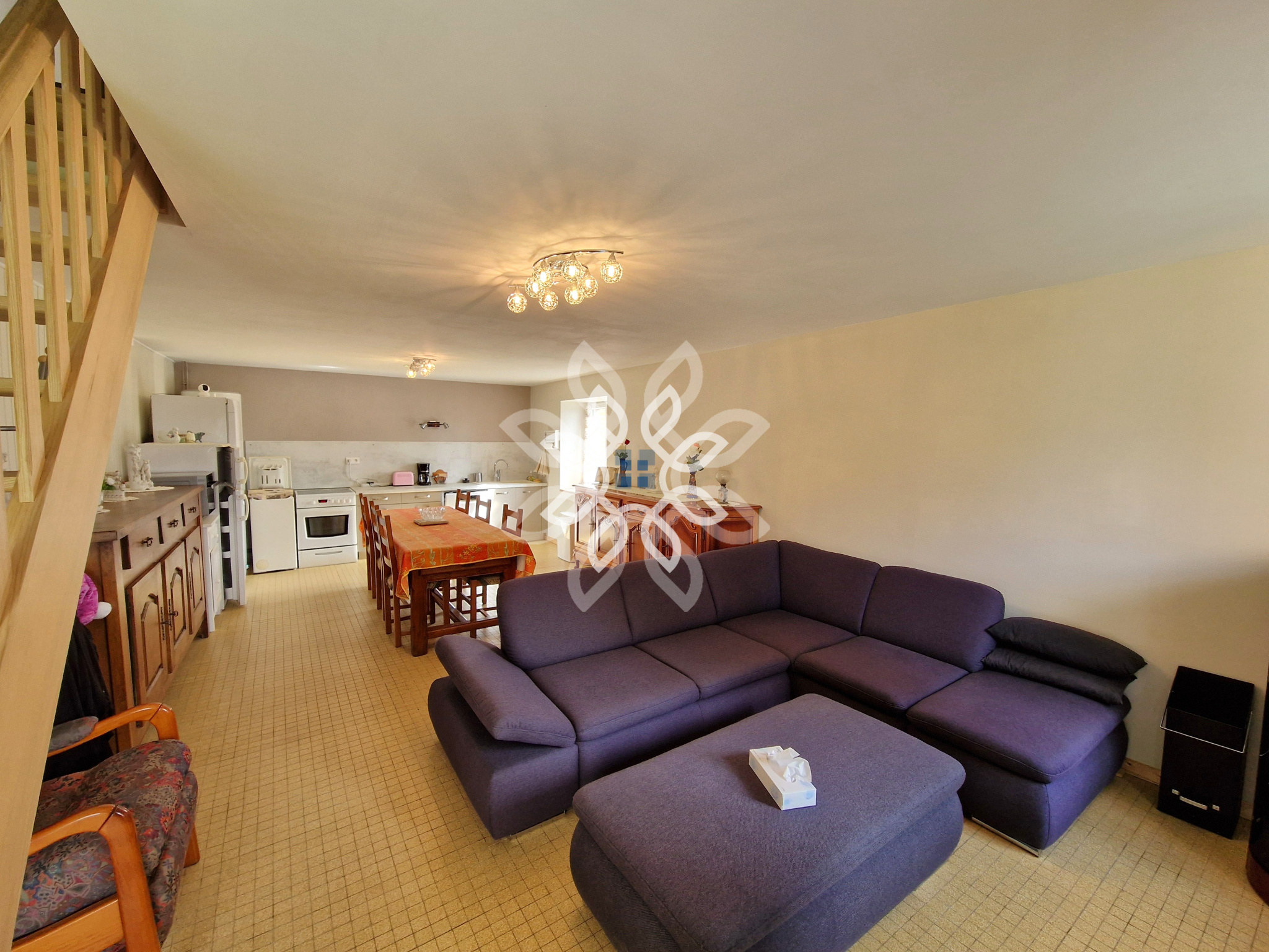...Au rez-de-chaussée, elle se compose d'une pièce de vie avec espace cuisine équipée, d'une salle...