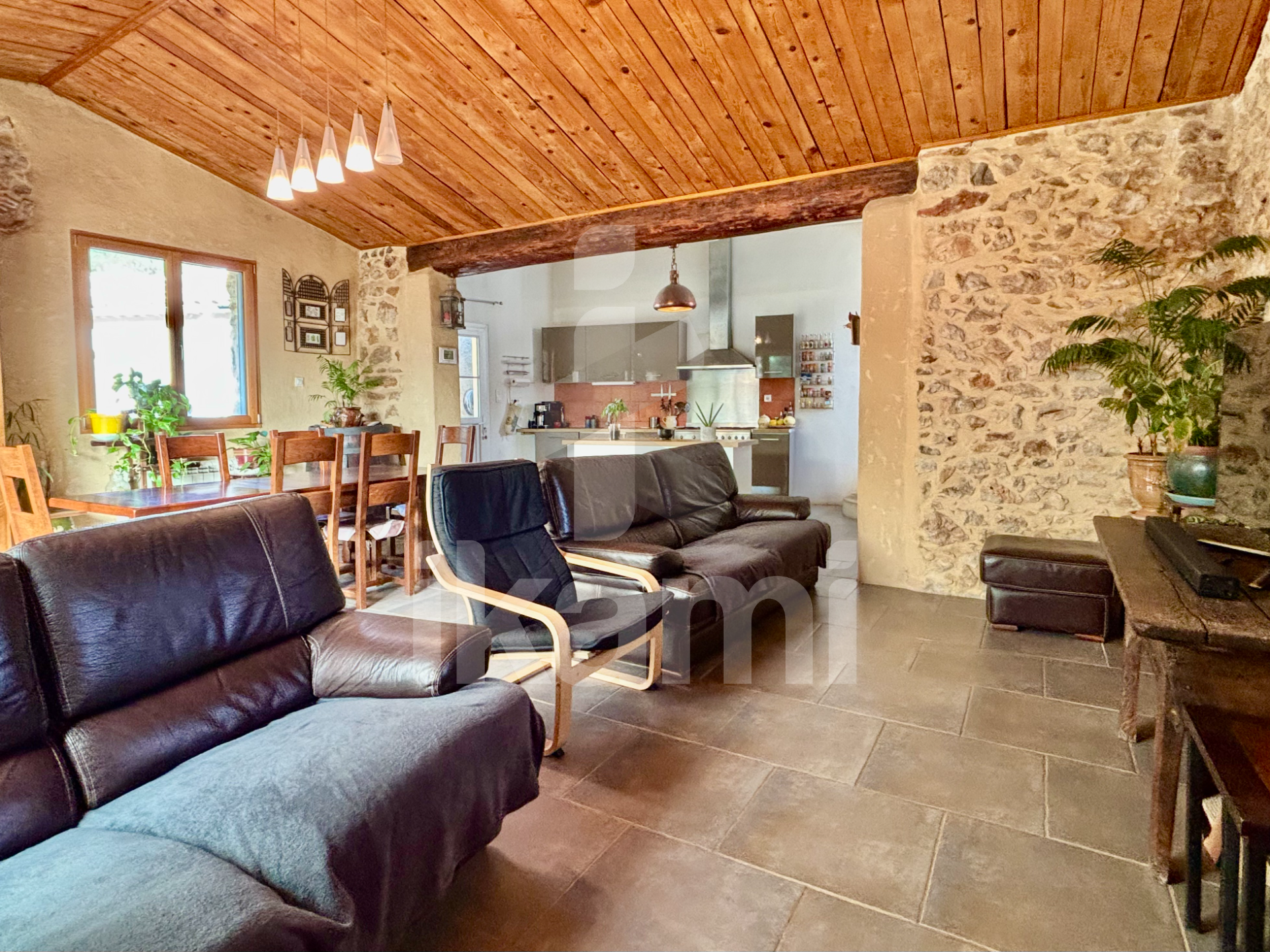 ...La maison principale de 120 m2 se compose d'une belle pièce de vie de 47 m2 avec cuisine ouverte,...