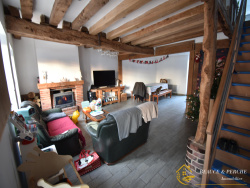 ...Petite maison de ville comprenant entrée sur salon séjour avec insert à bois, cuisine ouverte...