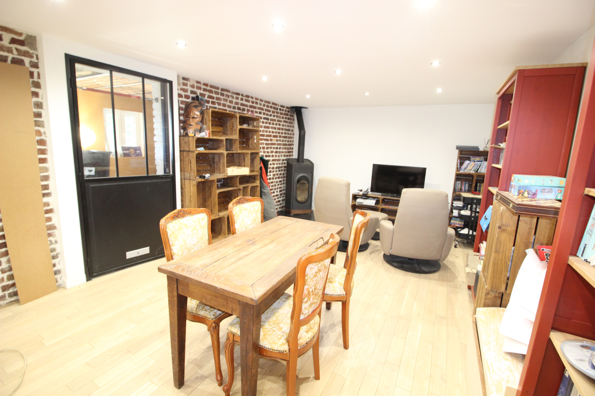 ...Son atout majeur ? Une pièce de vie lumineuse ouverte sur une véranda avec poêle à pellets,...