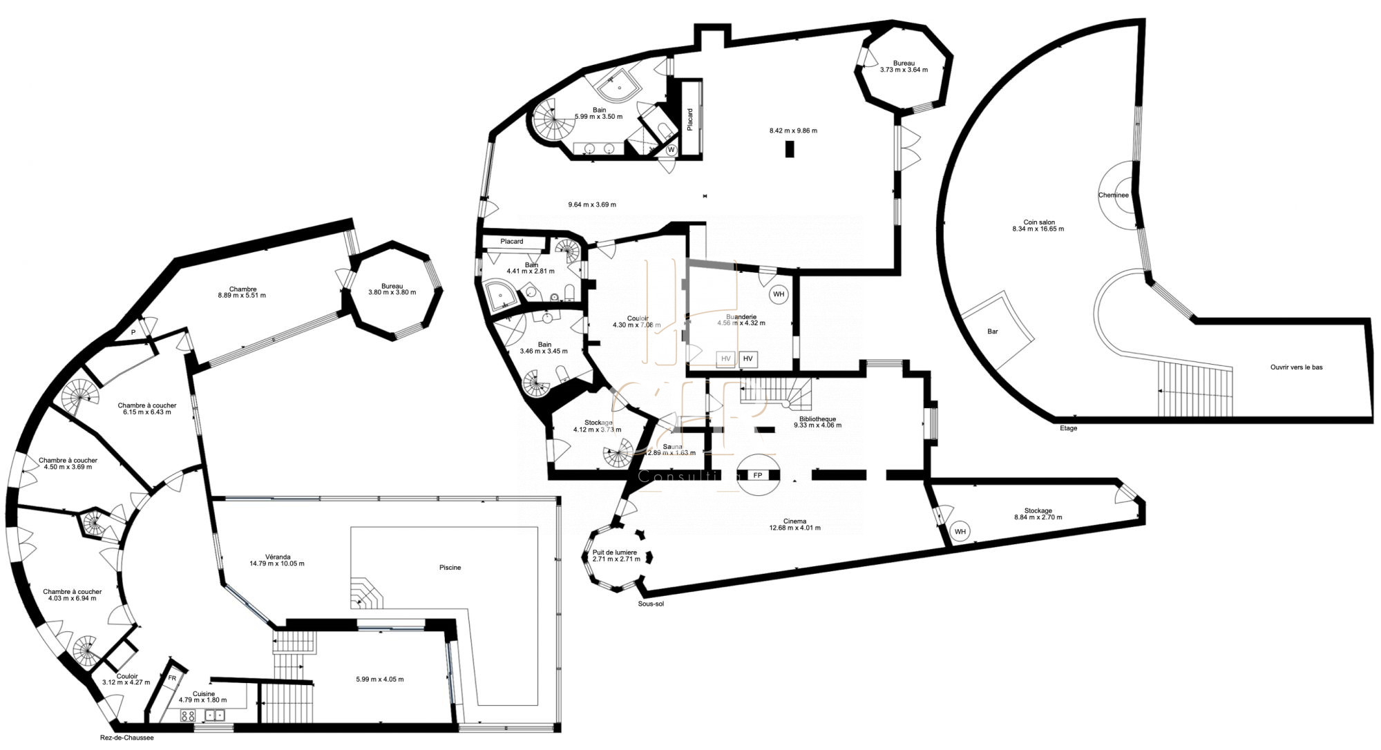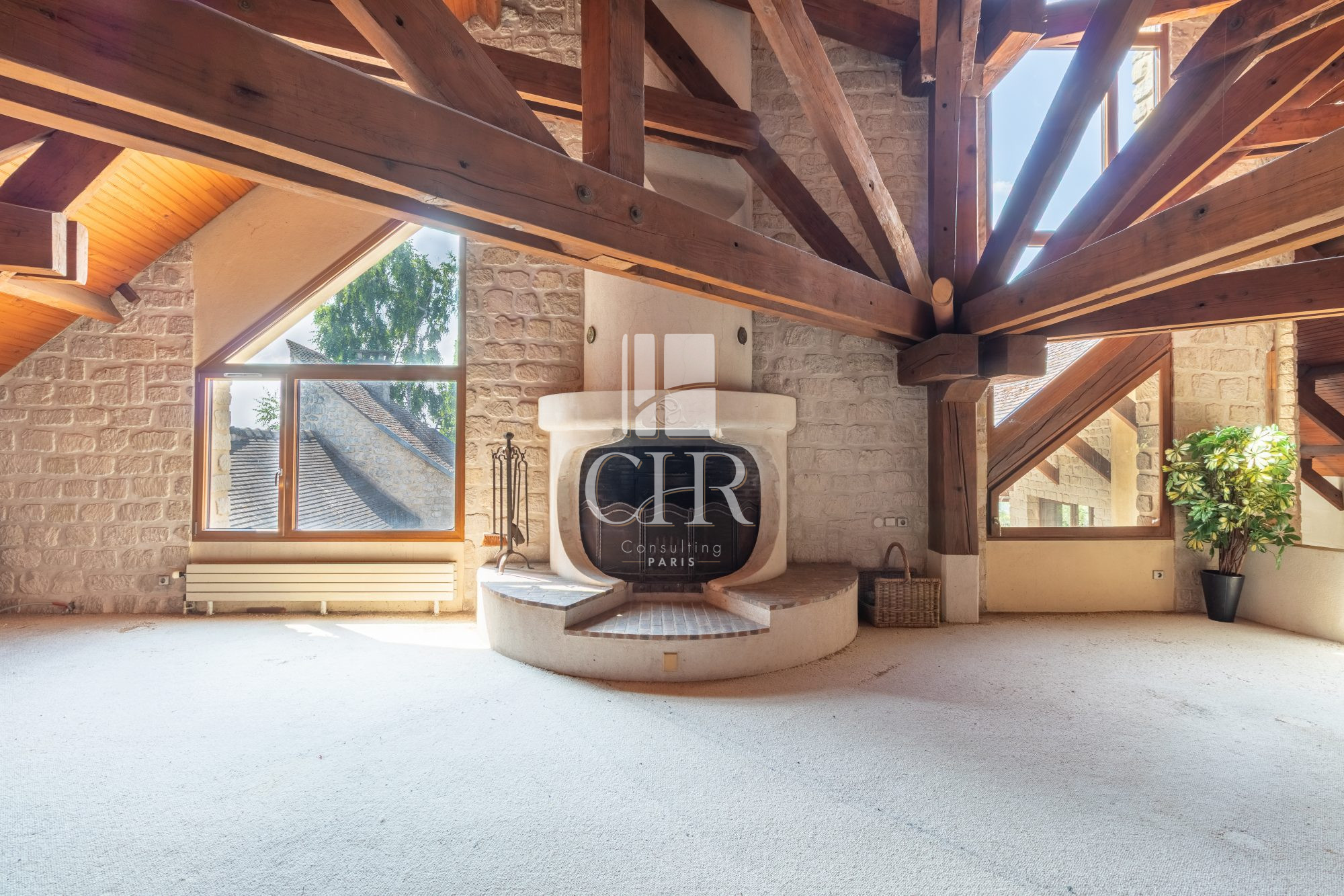 ...Au rez-de-chaussée, la pièce de vie d'environ 90 m² réunit séjour avec cheminée, salle à manger...