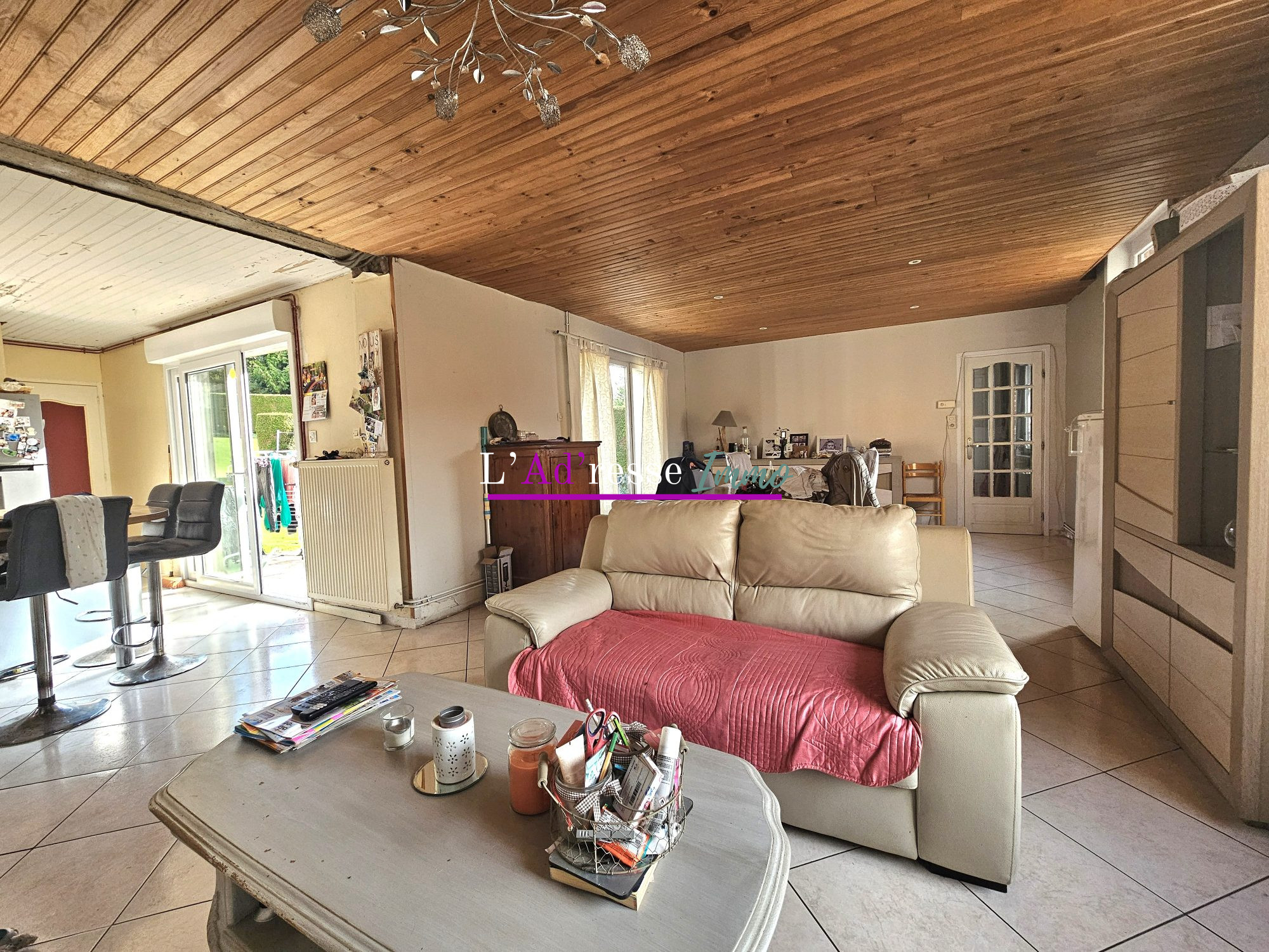 ...Vous serez séduits en découvrant la pièce à vivre de plus de 66m2 avec sa cheminée à insert bois...
