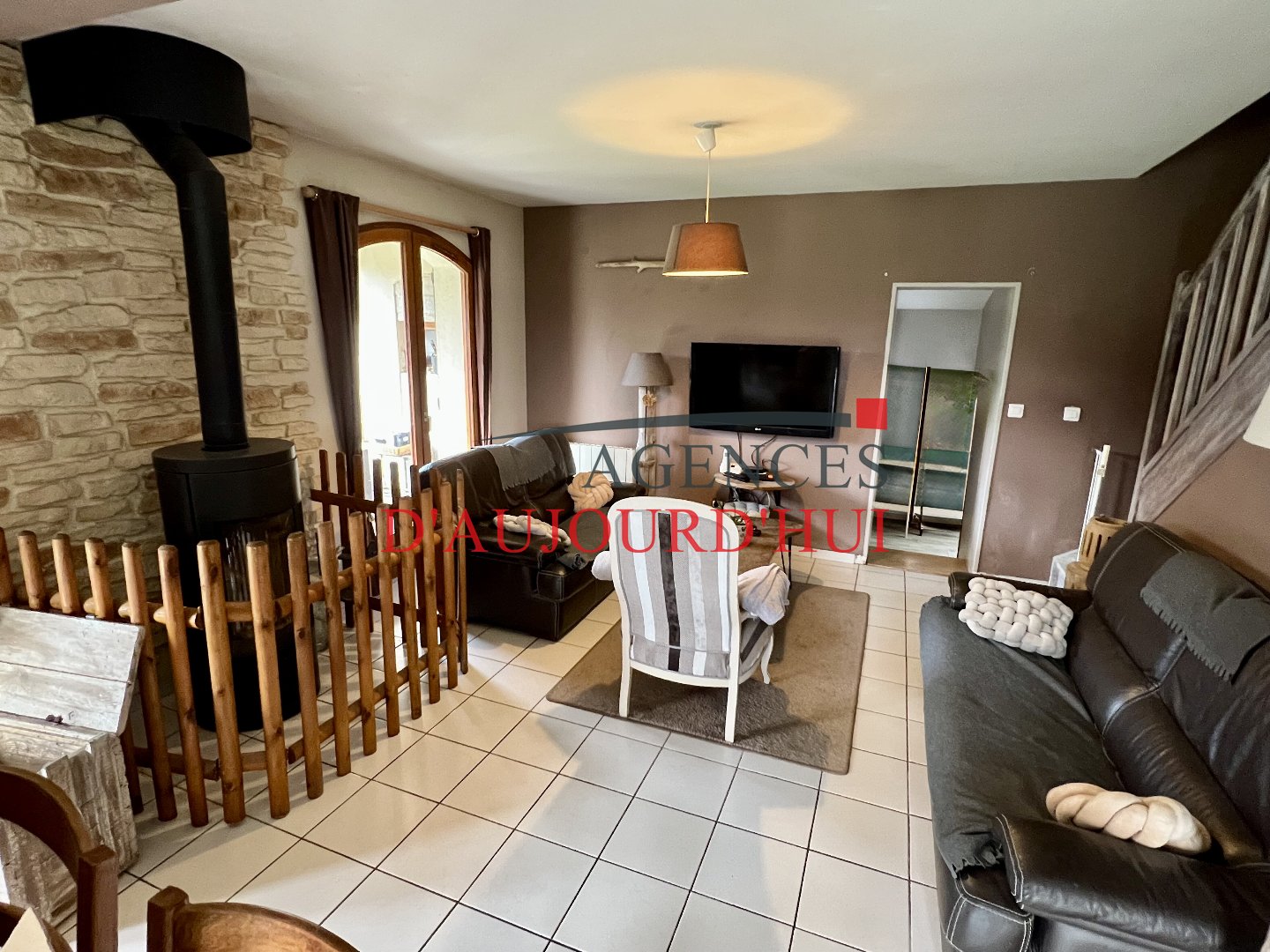 ...Édifiée sur deux niveaux, la maison s'ouvre sur une entrée menant à une vaste pièce de vie...