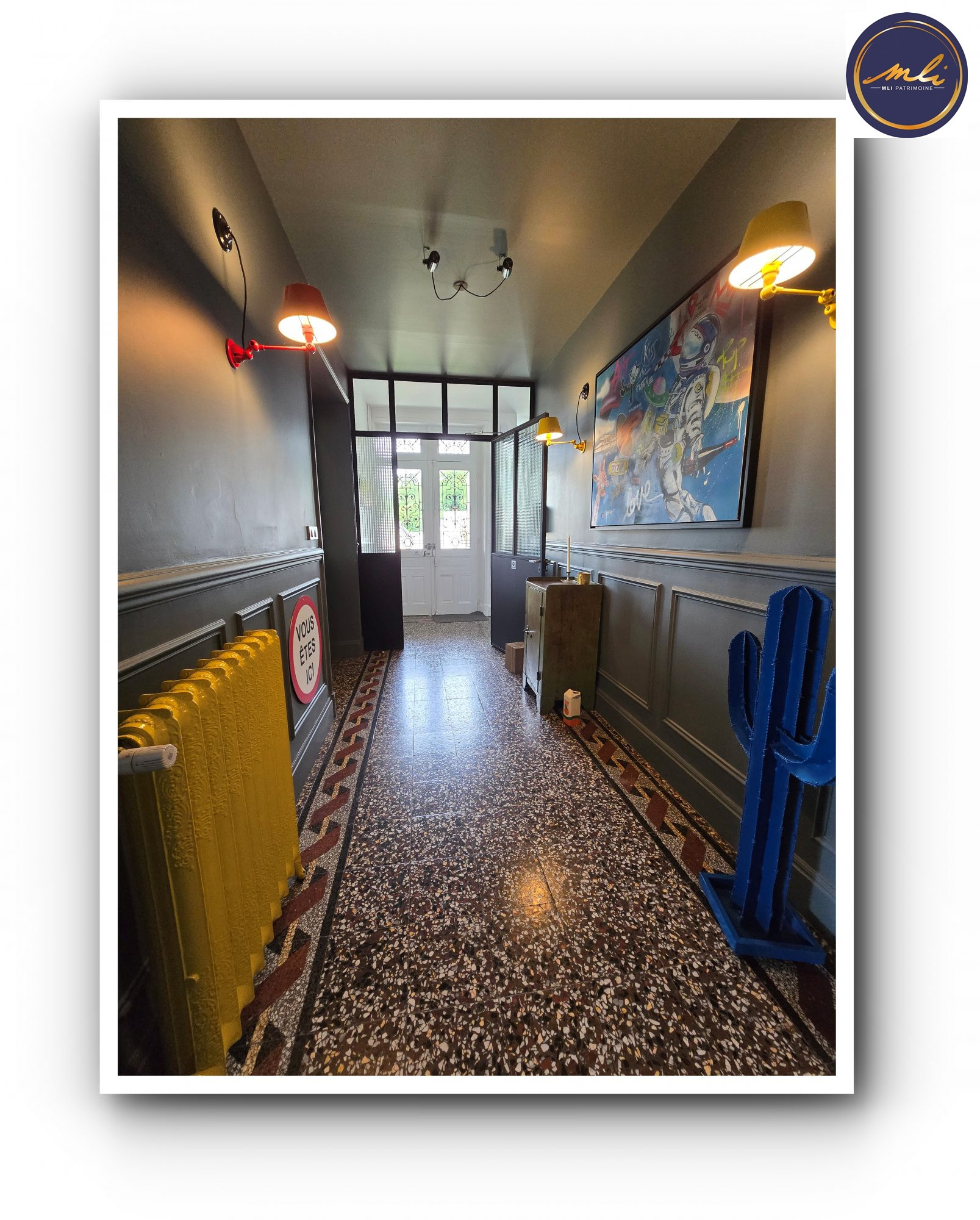 ...Elle se compose au rdc d'un sas menant sur une vaste entrée de 9 m2, d'une cuisine aménagée avec...