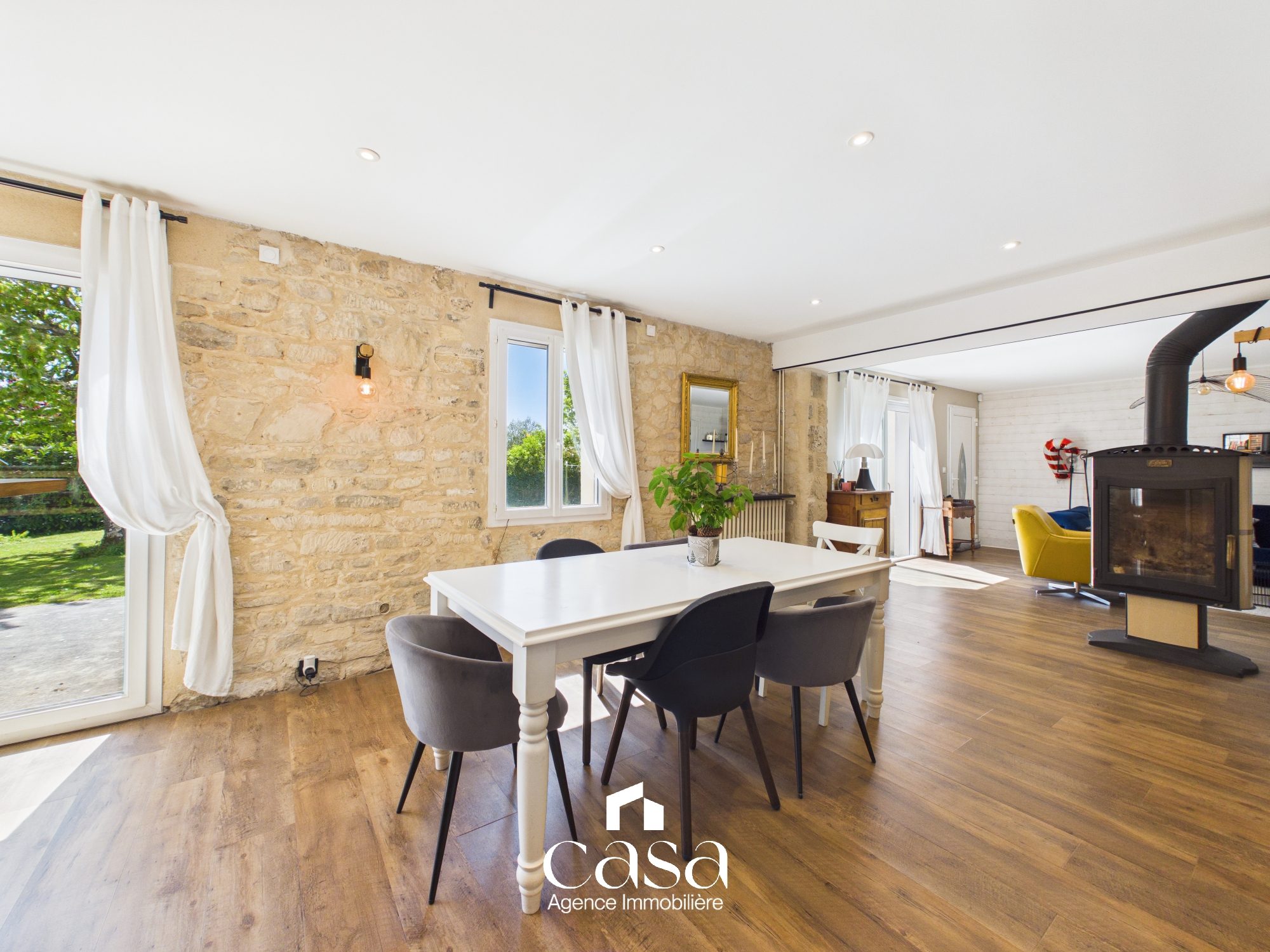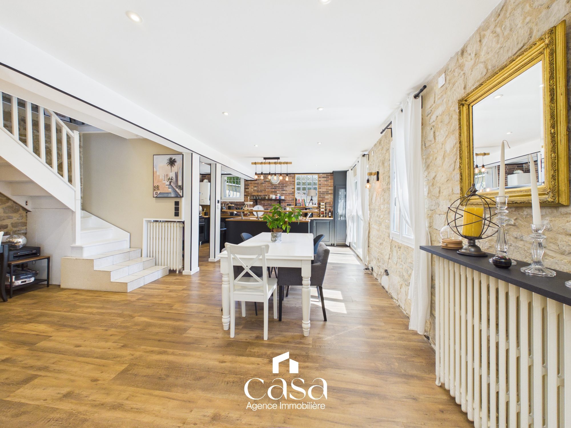 ...Dès l'entrée, le charme opère : une belle pièce de vie chaleureuse avec cuisine ouverte sur la...