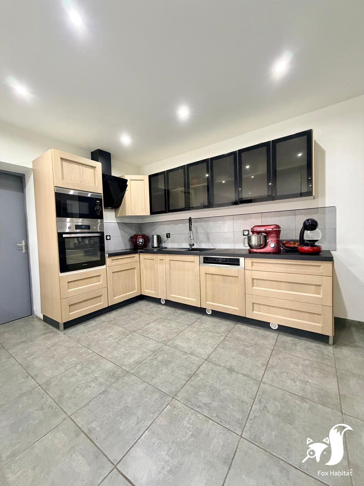 ...Dès l'entrée, vous accédez à une spacieuse cuisine équipée avec coin repas, idéale pour les...