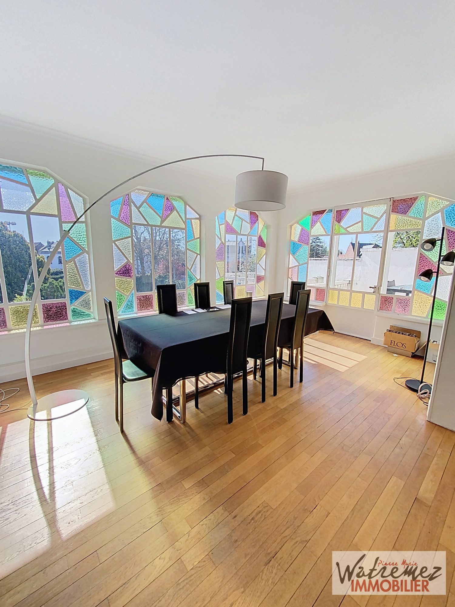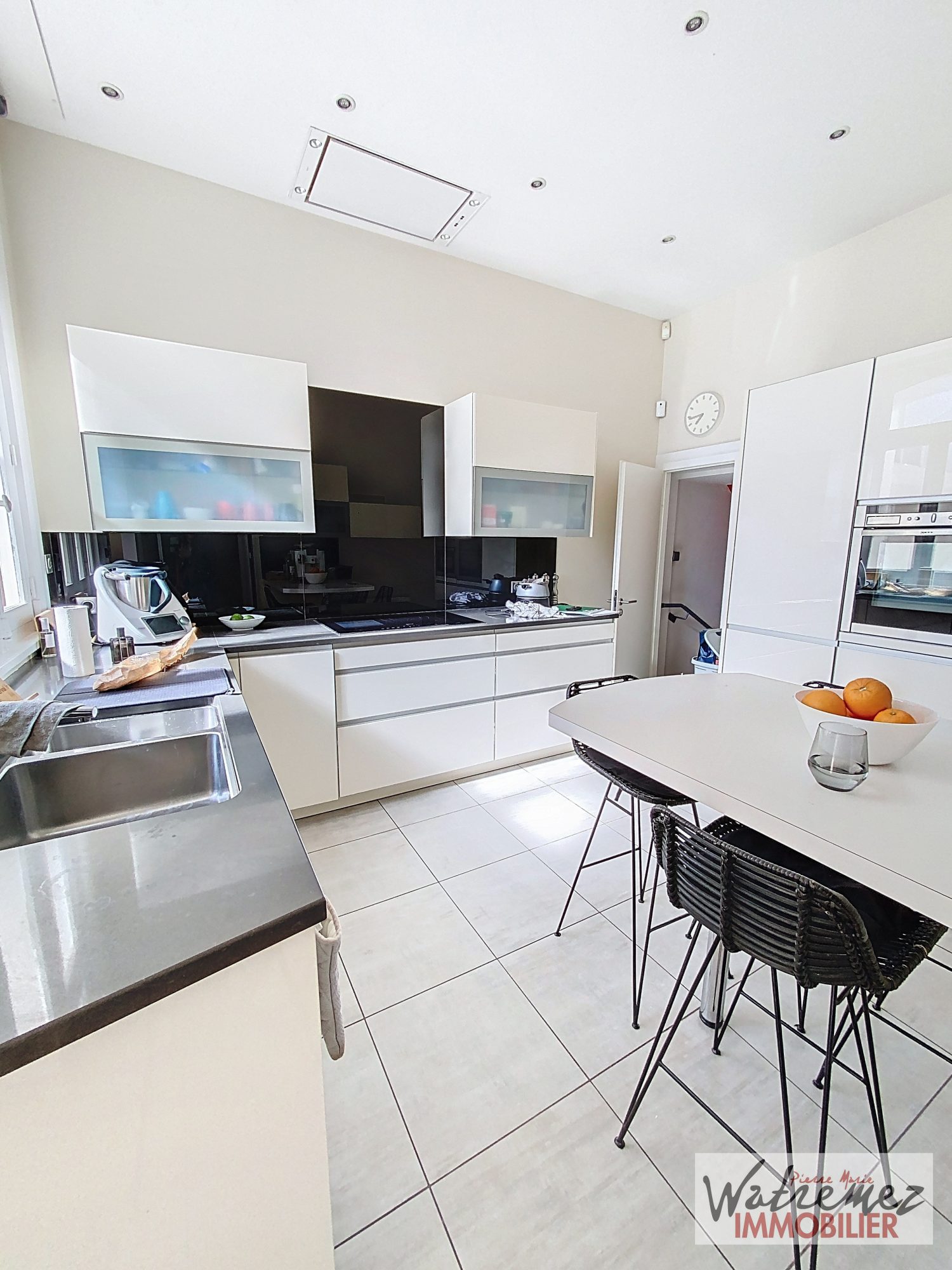 ...Dès l'entrée, le rez-de-chaussée révèle une pièce de réception de plus de 40 m² avec une cuisine...
