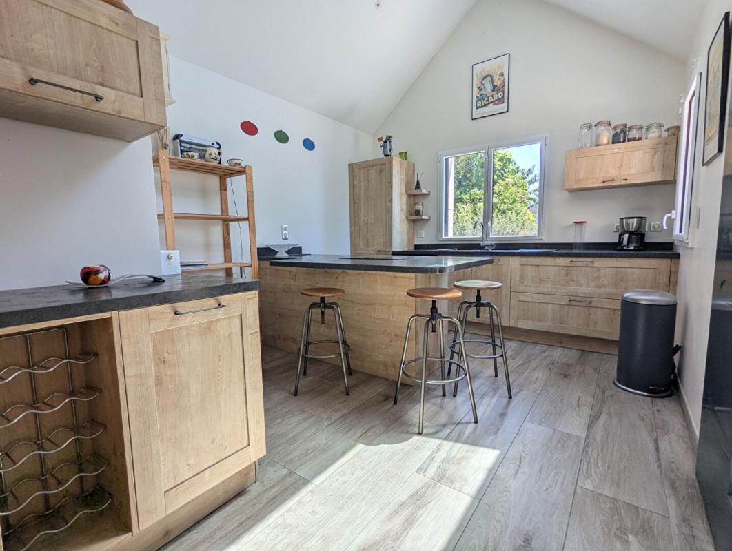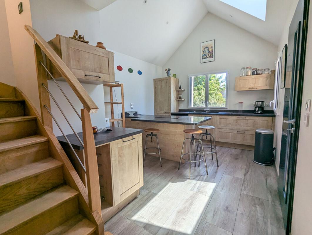 ...Pièce de vie de 42m² avec cuisine ouverte, 3 chambres et un garage de 15m²...