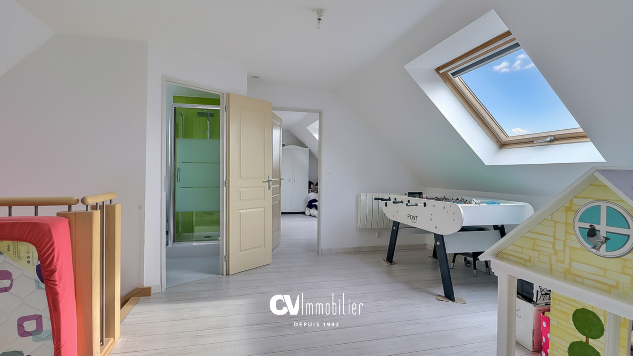 ...Elle se compose, au rez-de-chaussée, d'une spacieuse et lumineuse pièce de vie avec cuisine...