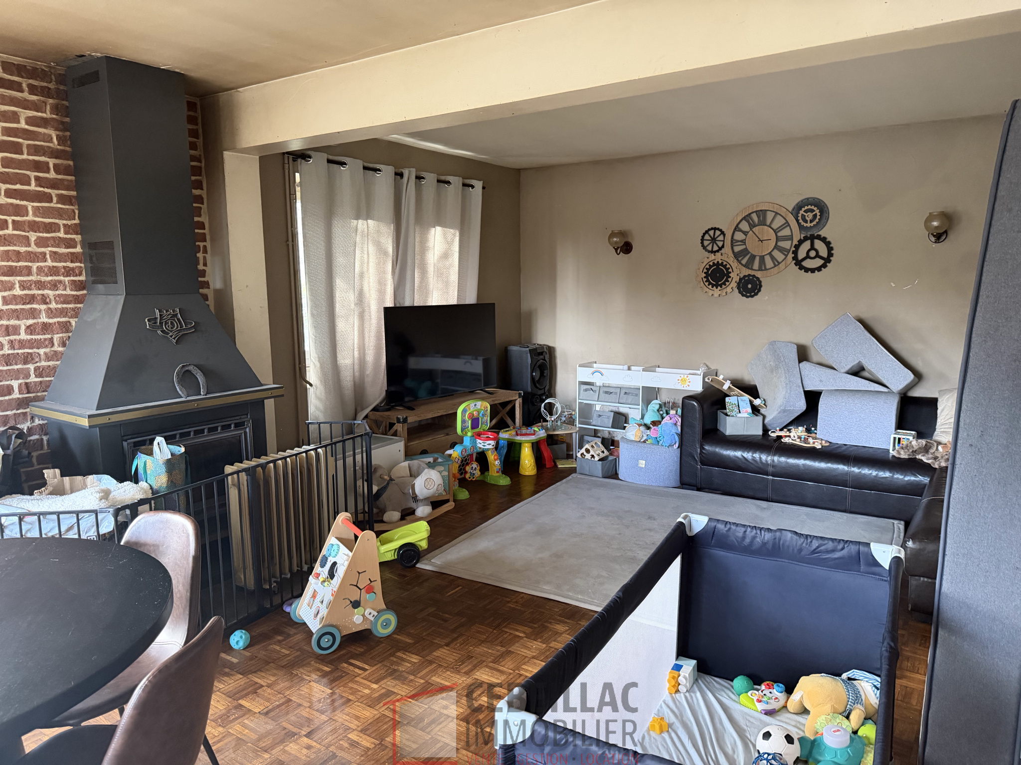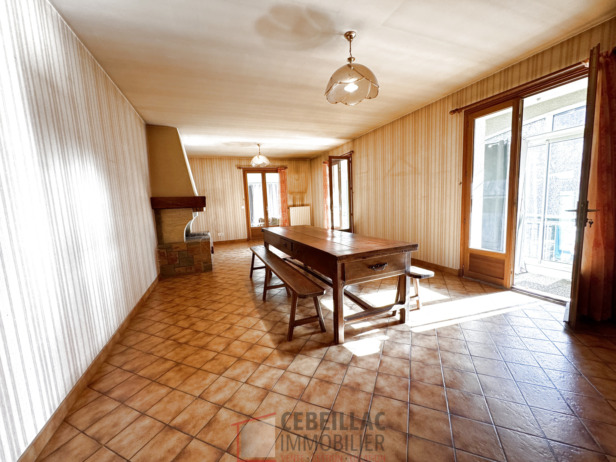 ...Rez-de-chaussée :- Un séjour, salle à manger de 33,50 m² agrémenté d'une cheminée...